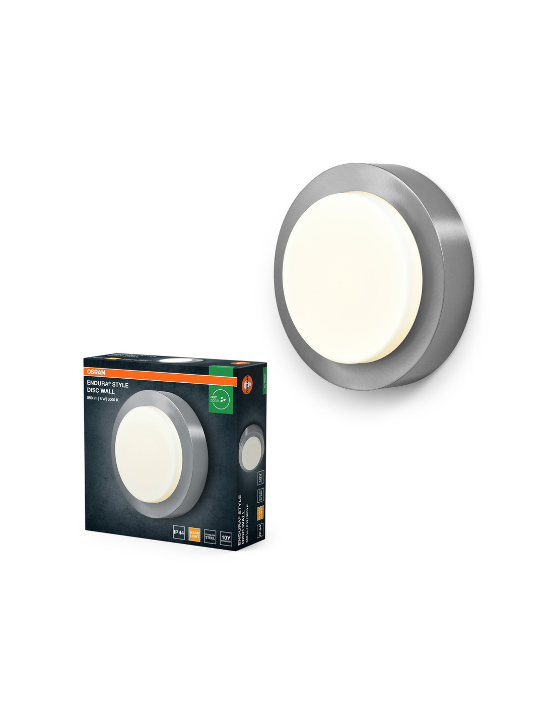 LEDVANCE ENDURA Style Disc to nowoczesny kinkiet zewnętrzny LED o minimalistycznym, okrągłym designie, który doskonale sprawdzi się jako oświetlenie elewacji domu, tarasu, balkonu lub wejścia. Prosta forma oraz wykończenie w kolorze stali nierdzewnej sprawiają, że lampa dobrze komponuje się z nowoczesną architekturą i estetycznie uzupełnia przestrzeń wokół budynku.