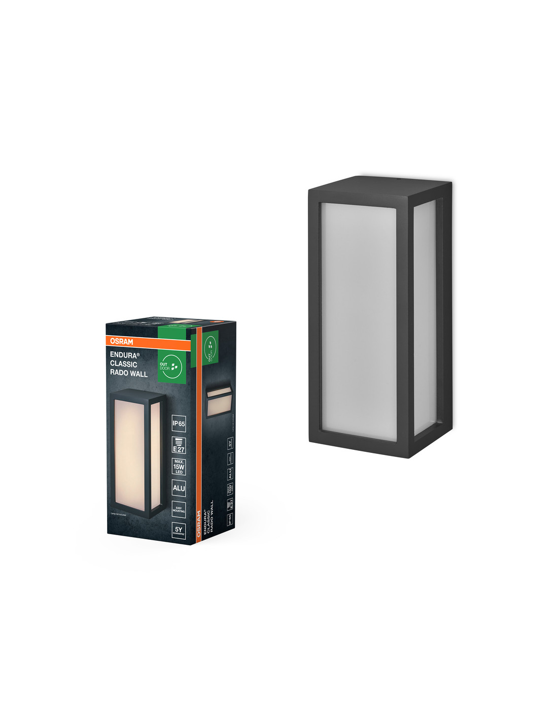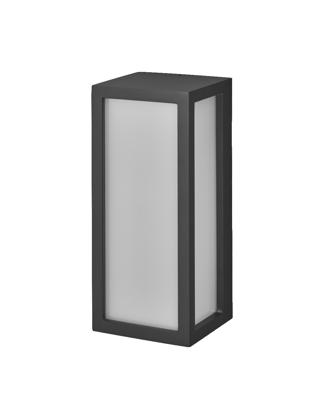 Cechy produktu: Obudowa z odlewu ciśnieniowego aluminium. Matowy klosz. Kolor obudowy antracytowy. Stopień ochrony: IP65. Zalety produktu: Wysoka uniwersalność wyboru źródła światła dzięki trzonkowi E27. Łatwa i szybka instalacja. Obszary zastosowań: Elewacje budynków. Oświetlenie awaryjne. Patia, balkony. Oświetlenie ścieżek dla pieszych. Podjazdy. Wyposażenie / Akcesoria: Kompletne akcesoria do montażu i podłączenia w zestawie. Źródła światła nie są dostarczane w zestawie. Porady dotyczące bezpieczeństwa: Wszystkie podłączenia elektryczne muszą być wykonane przez osobę wykwalifikowaną.. Uwaga, ryzyko porażenia prądem.. Produkt w klasie ochrony I. Wszystkie przewodzące prąd, metalowe części obudowy, które mogą absorbować napięcie podczas pracy lub podczas konserwacji w przypadku awarii, muszą być stale PODŁĄCZONE do przewodu uziemiającego..