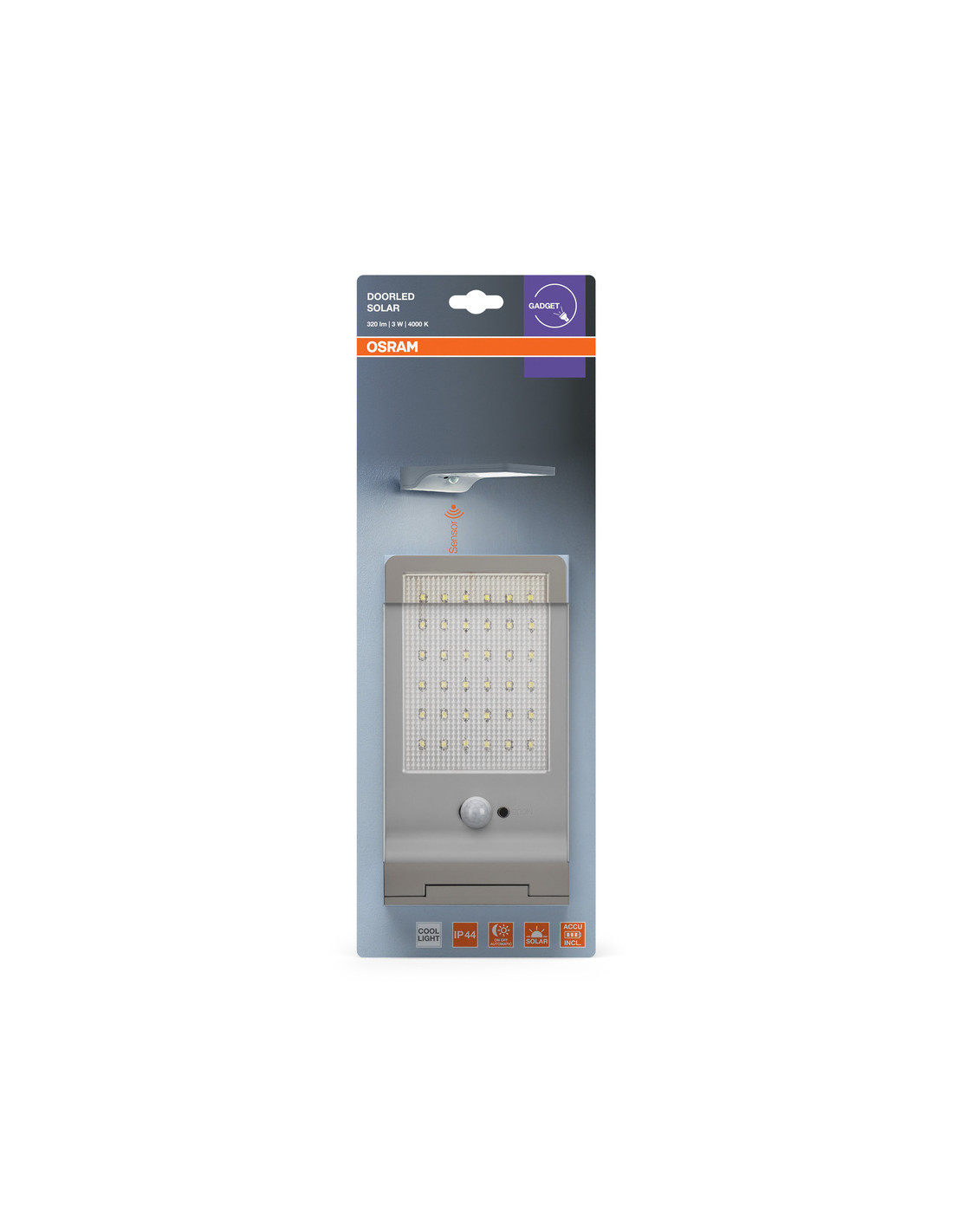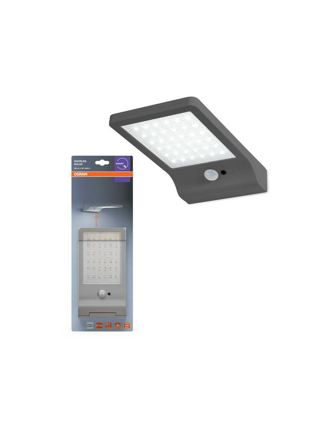 LAMPA ZEWNĘTRZNA SOLAR DOORLED 3W Z CZUJNIKIEM RUCHU I ZMIERZCHU PANEL SŁONECZNY SILVER