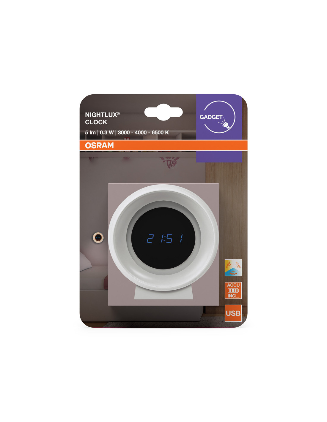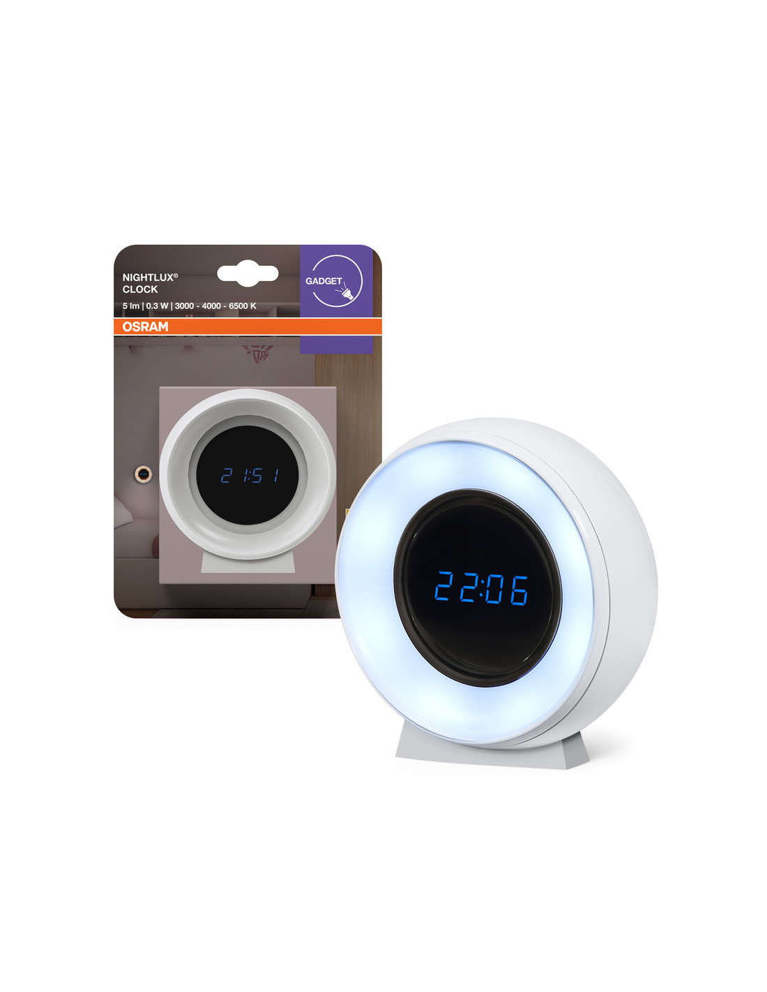 PRZENOŚNA LAMPKA NOCNA NIGHTLUX CLOCK 0.3W