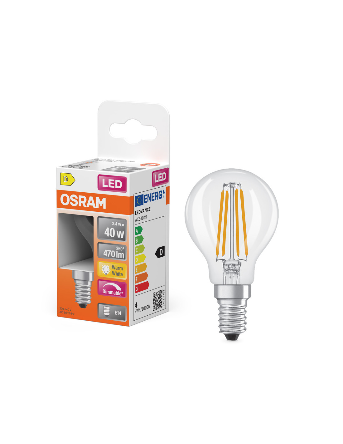 Cechy produktu: Lampy LED dla napięcia sieciowego. Ściemnialne (za pomocą licznych popularnych ściemniaczy, zobacz więcej www.ledvance.pl/dim). Kąt wiązki światła: do 300°. Trwałość do 15 000 h. Lampa wykonana ze szkła. Dobra jakość światła, wskaźnik oddawania barw Ra: 80; stała chromatyczność. Zalety produktu: Lampy wyposażone w innowacyjną technologię „włókien” LED. Niższe zużycie energii w porównaniu do lamp żarowych lub halogenowych. Natychmiast 100 % światła, bez czasu nagrzewania. Łatwy montaż zamiast zwykłych żarówek. Konstrukcja, wymiary i strumień świetlny porównywalne z tradycyjną żarówką. Obszary zastosowań: Doskonałe rozwiązanie do instalacji dekoracyjnych. Zastosowania domowe. Oświetlenie ogólne. Do użytku na zewnątrz tylko w odpowiednich oprawach zewnętrznych. Porady dotyczące bezpieczeństwa: Nie dotykaj lampy, jeśli jest stłuczona.. Nie wolno używać, jeśli zewnętrzne źródło światła jest uszkodzone..