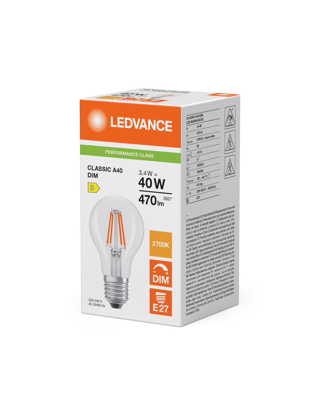 Cechy produktu: Profesjonalne lampy dla napięcia sieciowego. Kąt wiązki światła: do 300°. Ściemnialne. Trzonek: E27, B22d. Trwałość do 15 000 h. Lampa wykonana ze szkła. Dobra jakość światła, wskaźnik oddawania barw Ra: 80; stała chromatyczność. Zalety produktu: Wygląd, wymiary i strumień świetlny porównywalne z tradycyjnymi żarówkami lub żarówkami halogenowymi. Niższe zużycie energii w porównaniu do lamp żarowych lub halogenowych. Odporność na drgania. Brak promieniowania UV i podczerwonego w wiązce światła. Natychmiast 100 % światła, bez czasu nagrzewania. Łatwy montaż zamiast zwykłych żarówek. Obszary zastosowań: Doskonałe rozwiązanie do instalacji dekoracyjnych. Zastosowania domowe. Oświetlenie ogólne. Do użytku na zewnątrz tylko w odpowiednich oprawach zewnętrznych. Porady dotyczące bezpieczeństwa: Nie dotykaj lampy, jeśli jest stłuczona.. Nie wolno używać, jeśli zewnętrzne źródło światła jest uszkodzone..