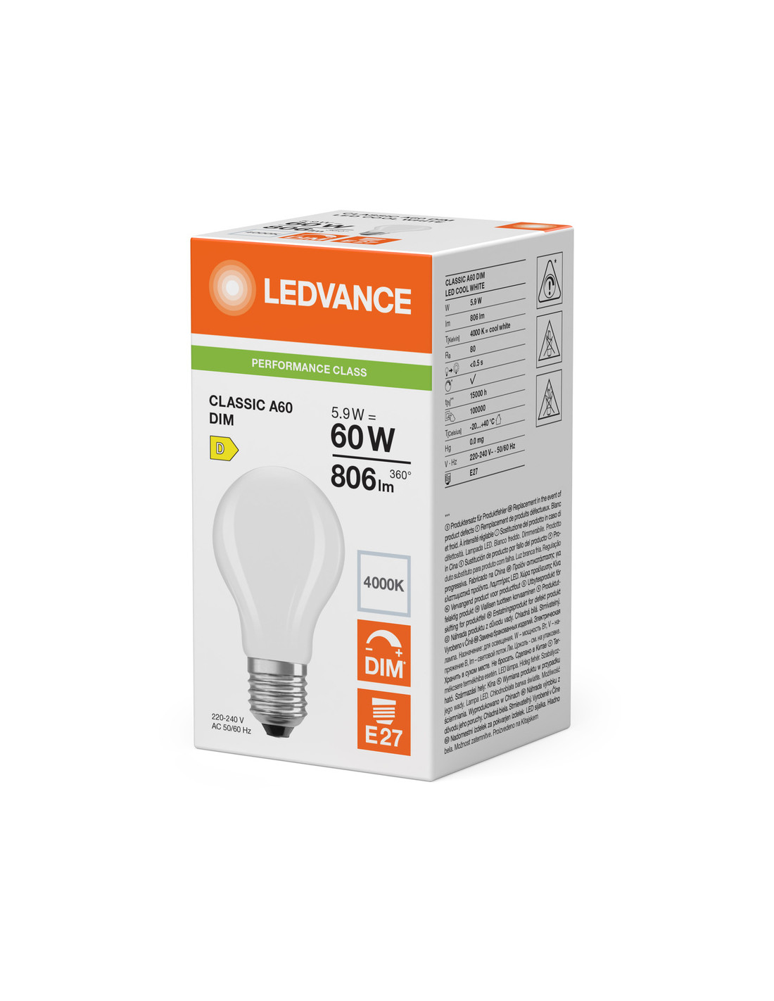 Cechy produktu: Profesjonalne lampy dla napięcia sieciowego. Kąt wiązki światła: do 300°. Ściemnialne. Trzonek: E27, B22d. Trwałość do 15 000 h. Lampa wykonana ze szkła. Dobra jakość światła, wskaźnik oddawania barw Ra: 80; stała chromatyczność. Zalety produktu: Wygląd, wymiary i strumień świetlny porównywalne z tradycyjnymi żarówkami lub żarówkami halogenowymi. Niższe zużycie energii w porównaniu do lamp żarowych lub halogenowych. Odporność na drgania. Brak promieniowania UV i podczerwonego w wiązce światła. Natychmiast 100 % światła, bez czasu nagrzewania. Łatwy montaż zamiast zwykłych żarówek. Obszary zastosowań: Doskonałe rozwiązanie do instalacji dekoracyjnych. Zastosowania domowe. Oświetlenie ogólne. Do użytku na zewnątrz tylko w odpowiednich oprawach zewnętrznych. Porady dotyczące bezpieczeństwa: Nie dotykaj lampy, jeśli jest stłuczona.. Nie wolno używać, jeśli zewnętrzne źródło światła jest uszkodzone..