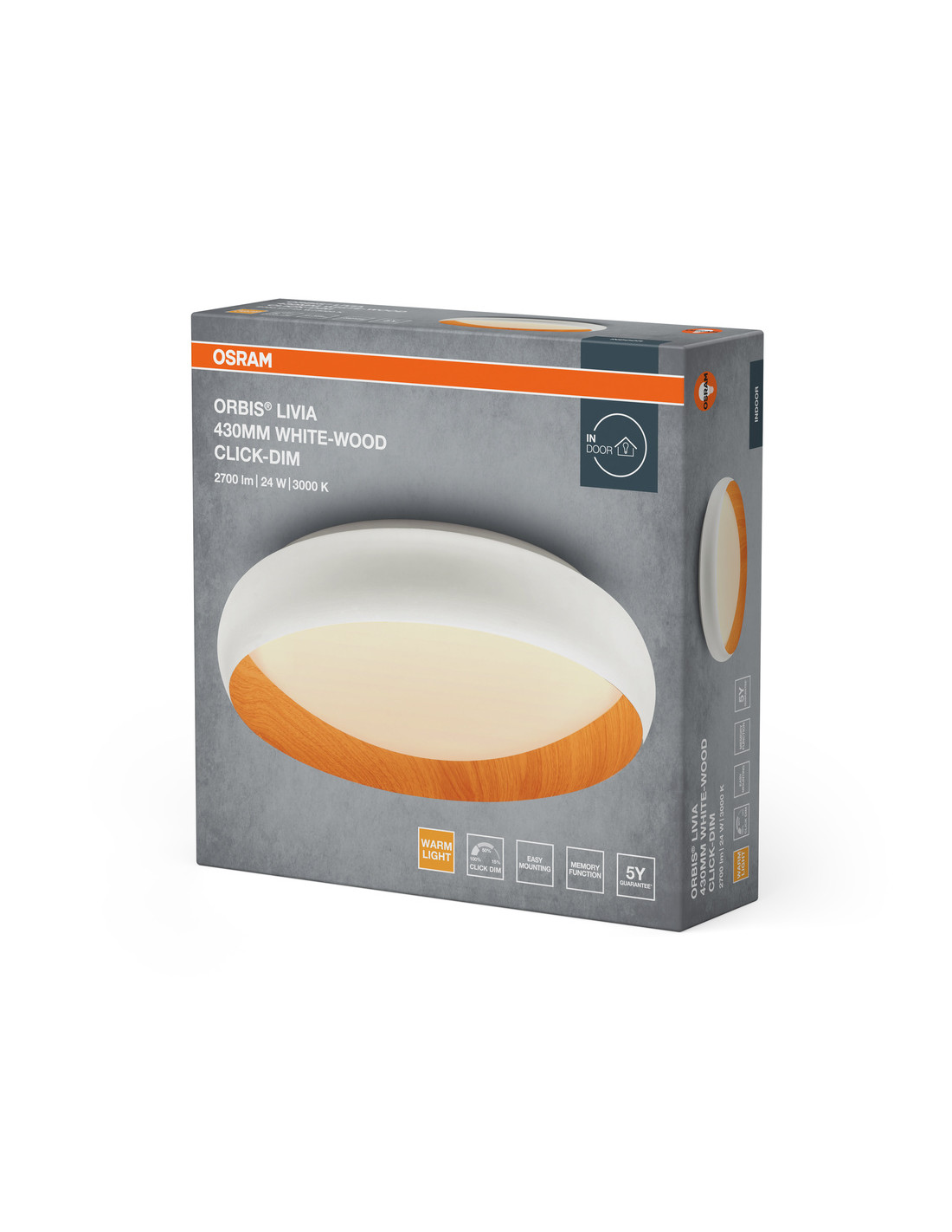 PLAFON LED ORBIS LIVIA 430MM 24W 3000K ciepła biała CLICK DIM WHITE AND WOOD DECOR