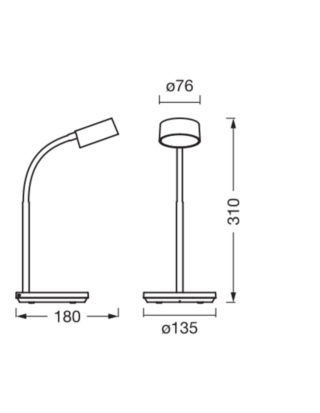 Cechy produktu: Oprawa biurkowa o atrakcyjnym wzornictwie i elastycznym ramieniu. Regulowana temperatura barwowa światła: 3000 K, 4000 K, 6500 K. Trwałość: do 25 000 h. Zalety produktu: Wysoka wszechstronność dzięki możliwości wyboru CCT. Zapewnia chłodne białe światło tworzące atmosferę aktywności oraz ciepłe białe światło tworzące relaksujący nastrój. Przełączenie i 3-stopniowe przyciemnianie za pomocą dotykowego czujnika w postawie oprawie oświetleniowej. Możliwość złożenia i zgięcia do 170° dla zapewnienia maksymalnej elastyczności. Obrotowa głowica oprawy umożliwiająca indywidualne ustawienie źródła światła. Obszary zastosowań: Pomieszczenia codziennego użytku. Stoliki, biurka. Biura w domu. Wyposażenie / Akcesoria: W zestawie przewód ładujący USB (długość: 1,0 m). Porady dotyczące bezpieczeństwa: Aby ograniczyć ryzyko uduszenia, elastyczne przewody PODŁĄCZONE do tej oprawy należy solidnie przymocować do ściany, jeśli znajdują się w zasięgu ręki..