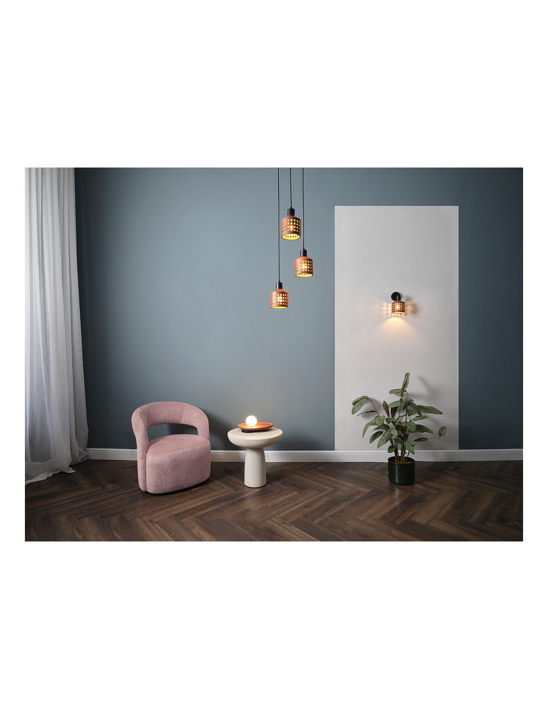 Cechy produktu: Materiał obudowy: metal i glina. Przewód tekstylny. Zalety produktu: Wysoka jakość . Duża elastyczność w doborze źródła światła. Zrównoważone rozwiązanie dzięki wymiennym źródłom światła. Łatwy montaż. Obszary zastosowań: Zastosowania wewnętrzne. Korytarze, wejścia, klatki schodowe, pokoje dzienne, sutereny. Porady dotyczące bezpieczeństwa: Wszystkie podłączenia elektryczne muszą być wykonane przez osobę wykwalifikowaną.. Uwaga, ryzyko porażenia prądem.. Produkt w klasie ochrony I. Wszystkie przewodzące prąd, metalowe części obudowy, które mogą absorbować napięcie podczas pracy lub podczas konserwacji w przypadku awarii, muszą być stale PODŁĄCZONE do przewodu uziemiającego.. Sprawdź przydatność ściany i sufitu. Jeśli nie jesteś pewien, zasięgnij profesjonalnej porady..