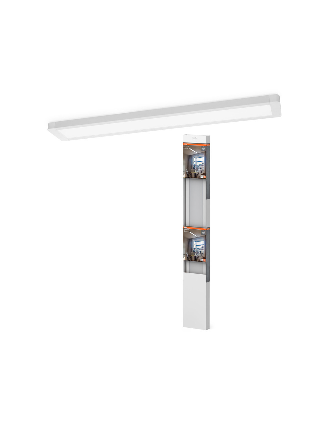 Cechy produktu: Zamiennik tradycyjnych opraw świetlówkowych T8. Belka świetlna naścienna i sufitowa. Materiał: aluminium (obudowa), poliwęglany (dyfuzor). Trwałość: do 30 000 h. Dostępne długości: 0,6 m, 1,2 m. Temperatura barwowa: 4000 K. Zalety produktu: Uniwersalne możliwości montażu. Funkcjonalna konstrukcja i minimalistyczny wygląd. Obszary zastosowań: Zastosowania wewnętrzne. Biura w domu. Ogólne oświetlenie wnętrz. Kuchnie, przestrzenie robocze. Porady dotyczące bezpieczeństwa: Wszystkie podłączenia elektryczne muszą być wykonane przez osobę wykwalifikowaną.. Uwaga, ryzyko porażenia prądem.. Sprawdź przydatność ściany i sufitu. Jeśli nie jesteś pewien, zasięgnij profesjonalnej porady..