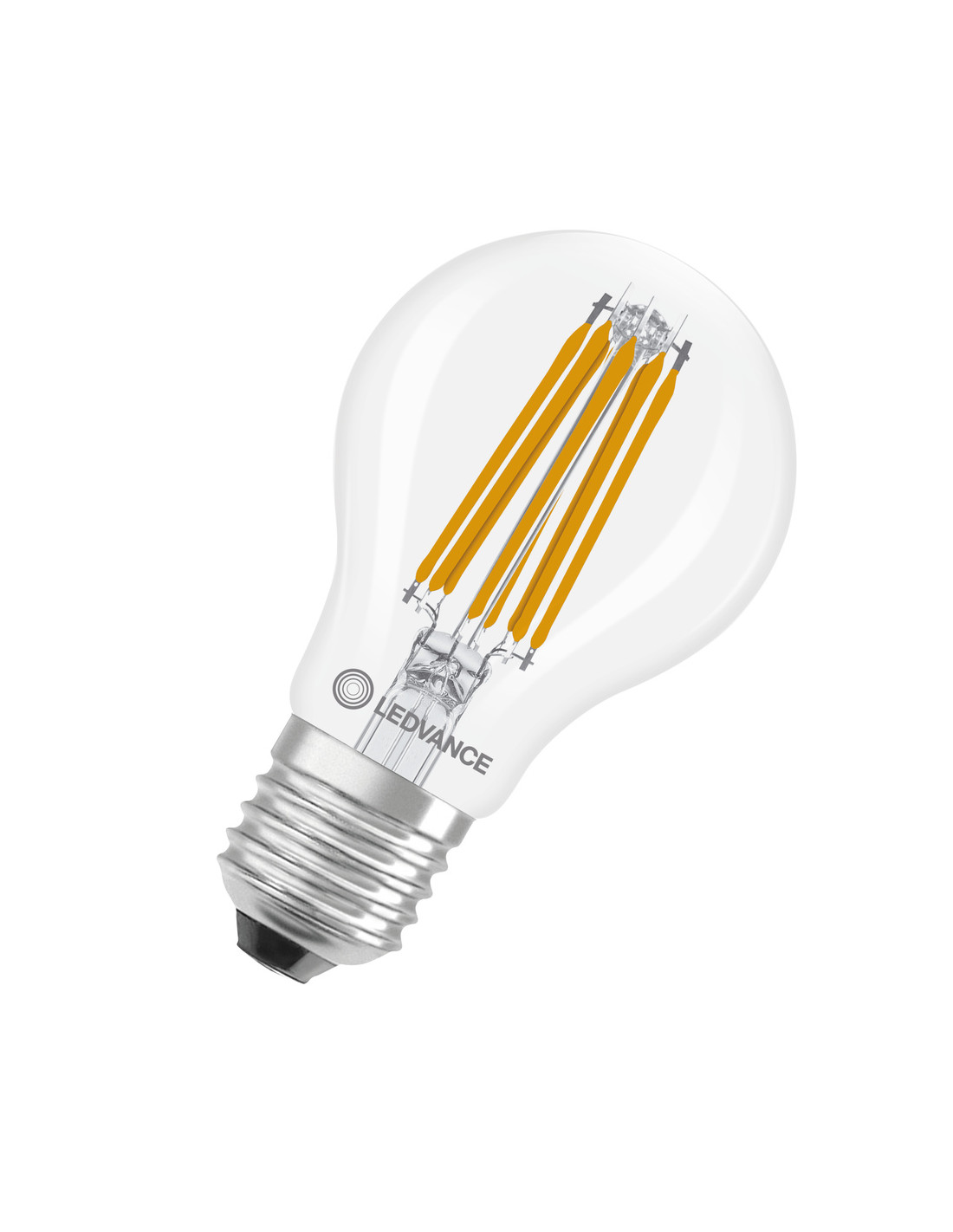Cechy produktu: Lampy LED dla napięcia sieciowego. Skuteczność świetlna do 210 lm/W. Kąt wiązki światła: do 300°. Długa trwałość do 50 000 godzin. Bardzo duża liczba cykli przełączania 500 000. Ściemnialne. Zalety produktu: Lampy wyposażone w innowacyjną technologię „włókien” LED. Niskie zużycie energii. Wygląd, wymiary i strumień świetlny porównywalne z żarówkami halogenowymi. Natychmiast 100 % światła, bez czasu nagrzewania. Niskie tętnienie światła. Obszary zastosowań: Doskonałe rozwiązanie do instalacji dekoracyjnych. Zastosowania domowe. Oświetlenie ogólne. Do użytku na zewnątrz tylko w odpowiednich oprawach zewnętrznych. Porady dotyczące bezpieczeństwa: Nie dotykaj lampy, jeśli jest stłuczona.. Nie wolno używać, jeśli zewnętrzne źródło światła jest uszkodzone..