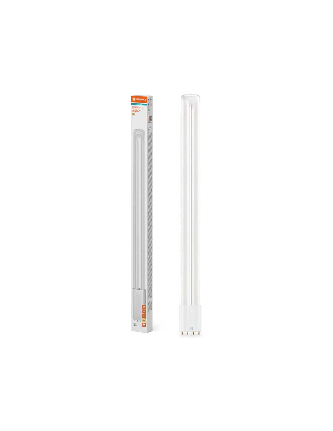 Cechy produktu: Trwałość: do 30 000 h. Jednotrzonkowa, trzonek 4-kołkowy wtykowy 2G11. Stopień ochrony: IP20. Lampy niezawierające rtęci. Zalety produktu: Łatwa instalacja. Niskie zużycie energii. Nieodpowiednie do pracy z konwencjonalnymi statecznikami. Łatwa wymiana lamp dzięki kompaktowej konstrukcji. Możliwe bezpośrednie zasilanie z sieci 230 V AC. Obszary zastosowań: Oświetlenie ogólne – dla temperatur otoczenia w zakresie -20…+45 °C. Biura, budynki publiczne. Sklepy. Hotele, restauracje. Przemysł. Porady dotyczące bezpieczeństwa: Nieodpowiednie do pracy z konwencjonalnymi statecznikami.. Zakres temperatury roboczej DULUX LED jest ograniczony. W przypadku wątpliwości co do przydatności aplikacji, przed instalacją należy zmierzyć temperaturę Tc na produkcie.. Oprawa nie nadaje się do użytku awaryjnego.. Nie dotykaj lampy, jeśli jest stłuczona.. Nie wolno używać, jeśli zewnętrzne źródło światła jest uszkodzone..