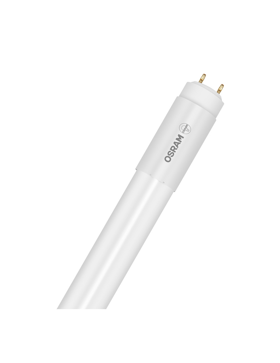 Cechy produktu: Wykonana ze szkła tuba LED T8 z trzonkiem G13. Kompatybilność z popularnymi statecznikami elektronicznymi (patrz również compatibility list). Niskie tętnienie światła zgodnie z UE 2019/2020. Równomierne oświetlenie. Trwałość: do 30 000 h. Bez rtęci, zgodne z RoHS. Stopień ochrony: IP20. Zalety produktu: Łatwa instalacja. Nadaje się również do pracy w niskich temperaturach. Lampa nie ugina się dzięki rurce wykonanej ze szkła. Obszary zastosowań: Oświetlenie ogólne – dla temperatur otoczenia w zakresie -20…+45 °C. Korytarze, klatki schodowe, garaże. Domy towarowe. Porady dotyczące bezpieczeństwa: Nie nadaje się do zasilania przez tradycyjny układ zasilający (dławik magnetyczny) i bezpośrednie zasilanie napięciem sieciowym.. Możliwa praca w zastosowaniach zewnętrznych w odpowiednich oprawach odpornych na wilgoć zgodnie z kartą katalogową i instrukcją instalacji.. Zakres temperatur pracy tub LED jest ograniczony. W przypadku wątpliwości, należy zmierzyć temperaturę w punkcie Tc oznaczonym na lampie w celu weryfikacji..