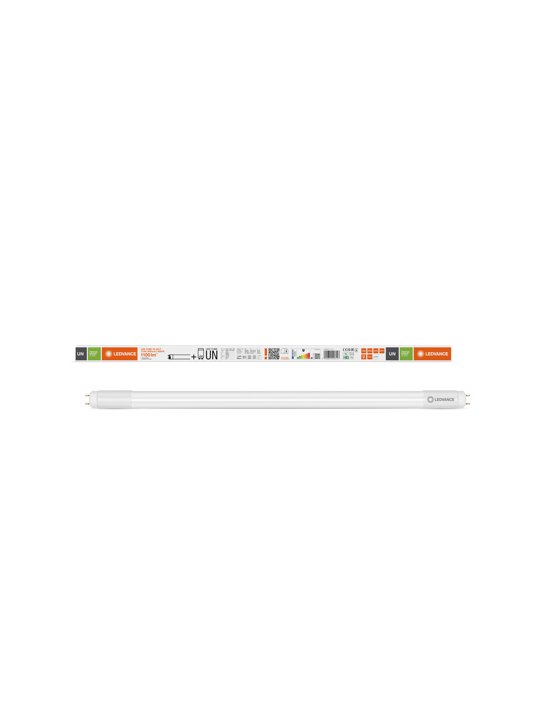 Cechy produktu: Zamiennik LED do klasycznych świetlówek T8 z trzonkiem G13 do stosowania w oprawach CCG, ECG lub na sieci AC. Zgodność z konwencjonalnymi statecznikami i wieloma popularnymi statecznikami elektronicznymi (patrz również compatibility list) i zasilaniem sieciowym. Niskie tętnienie światła zgodnie z UE 2019/2020 (SVM 0,4 / PstLM 1). Tuba LED wykonana ze szkła z zabezpieczeniem przed odpryskami. Równomierne oświetlenie. Bez rtęci, zgodne z RoHS. Stopień ochrony: IP20. Trwałość do 60 000 godzin. Zalety produktu: Lampa nie ugina się dzięki rurce wykonanej ze szkła. Szybka, prosta i bezpieczna wymiana bez zmiany okablowania. Oszczędność energii do 66% (w porównaniu ze świetlówką T8). Bardzo duża odporność na obciążenia przełączeniowe. Wysokie natężenie oświetlenia dla zaawansowanych zadań oświetleniowych. Wsparcie wdrażania koncepcji HACCP od produkcji do prezentacji. Nadaje się również do pracy w niskich temperaturach. Obszary zastosowań: Oświetlenie ogólne – dla temperatur otoczenia w zakresie -20…+45 °C. Iluminacja stref produkcji. Strefy i przejścia o dużym natężeniu ruchu. Supermarkety i domy towarowe. Przemysł. Porady prawne: Gdy zostaną użyte do wymiany świetlówki T8, całkowita wydajność energetyczna i rozsył światła zależą od projektu systemu oświetleniowego.. Porady dotyczące bezpieczeństwa: Możliwa praca w zastosowaniach zewnętrznych w odpowiednich oprawach odpornych na wilgoć zgodnie z kartą katalogową i instrukcją instalacji.. Zakres temperatur pracy tub LED jest ograniczony. W przypadku wątpliwości, należy zmierzyć temperaturę w punkcie Tc oznaczonym na lampie w celu weryfikacji.. Do pracy LED TUBE T8 UN z konwencjonalnym statecznikiem, należy wymienić istniejący zapłonnik na zapłonnik LED znajdujący się w opakowaniu tuby LED.. Wszystkie podłączenia elektryczne muszą być wykonane przez osobę wykwalifikowaną.. Nie nadaje się do oświetlenia awaryjnego..