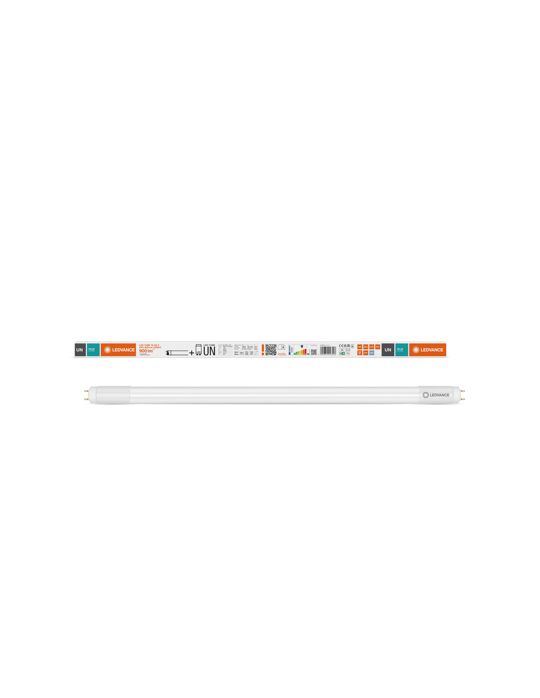 Cechy produktu: Zamiennik LED do klasycznych świetlówek T8 z trzonkiem G13 do stosowania w oprawach CCG, ECG lub na sieci AC. Zgodność z konwencjonalnymi statecznikami i wieloma popularnymi statecznikami elektronicznymi (patrz również compatibility list) i zasilaniem sieciowym. Niskie tętnienie światła zgodnie z UE 2019/2020 (SVM 0,4 / PstLM 1). Rurka wykonana ze szkła. Równomierne oświetlenie. Bez rtęci, zgodne z RoHS. Stopień ochrony: IP20. Trwałość: do 30 000 h. Zalety produktu: Lampa nie ugina się dzięki rurce wykonanej ze szkła. Szybka, prosta i bezpieczna wymiana bez zmiany okablowania. Oszczędność energii do 58% (w porównaniu do świetlówki T8). Bardzo duża odporność na obciążenia przełączeniowe. Nadaje się również do pracy w niskich temperaturach. Obszary zastosowań: Oświetlenie ogólne – dla temperatur otoczenia w zakresie -20…+45 °C. Korytarze, klatki schodowe, garaże. Przemysł. Domy towarowe. Chłodnie i magazyny. Zastosowania domowe. Supermarkety i domy towarowe. Porady prawne: Gdy zostaną użyte do wymiany świetlówki T8, całkowita wydajność energetyczna i rozsył światła zależą od projektu systemu oświetleniowego.. Porady dotyczące bezpieczeństwa: Możliwa praca w zastosowaniach zewnętrznych w odpowiednich oprawach odpornych na wilgoć zgodnie z kartą katalogową i instrukcją instalacji.. Zakres temperatur pracy tub LED jest ograniczony. W przypadku wątpliwości, należy zmierzyć temperaturę w punkcie Tc oznaczonym na lampie w celu weryfikacji.. Do pracy LED TUBE T8 UN z konwencjonalnym statecznikiem, należy wymienić istniejący zapłonnik na zapłonnik LED znajdujący się w opakowaniu tuby LED.. Wszystkie podłączenia elektryczne muszą być wykonane przez osobę wykwalifikowaną.. Nie nadaje się do oświetlenia awaryjnego..