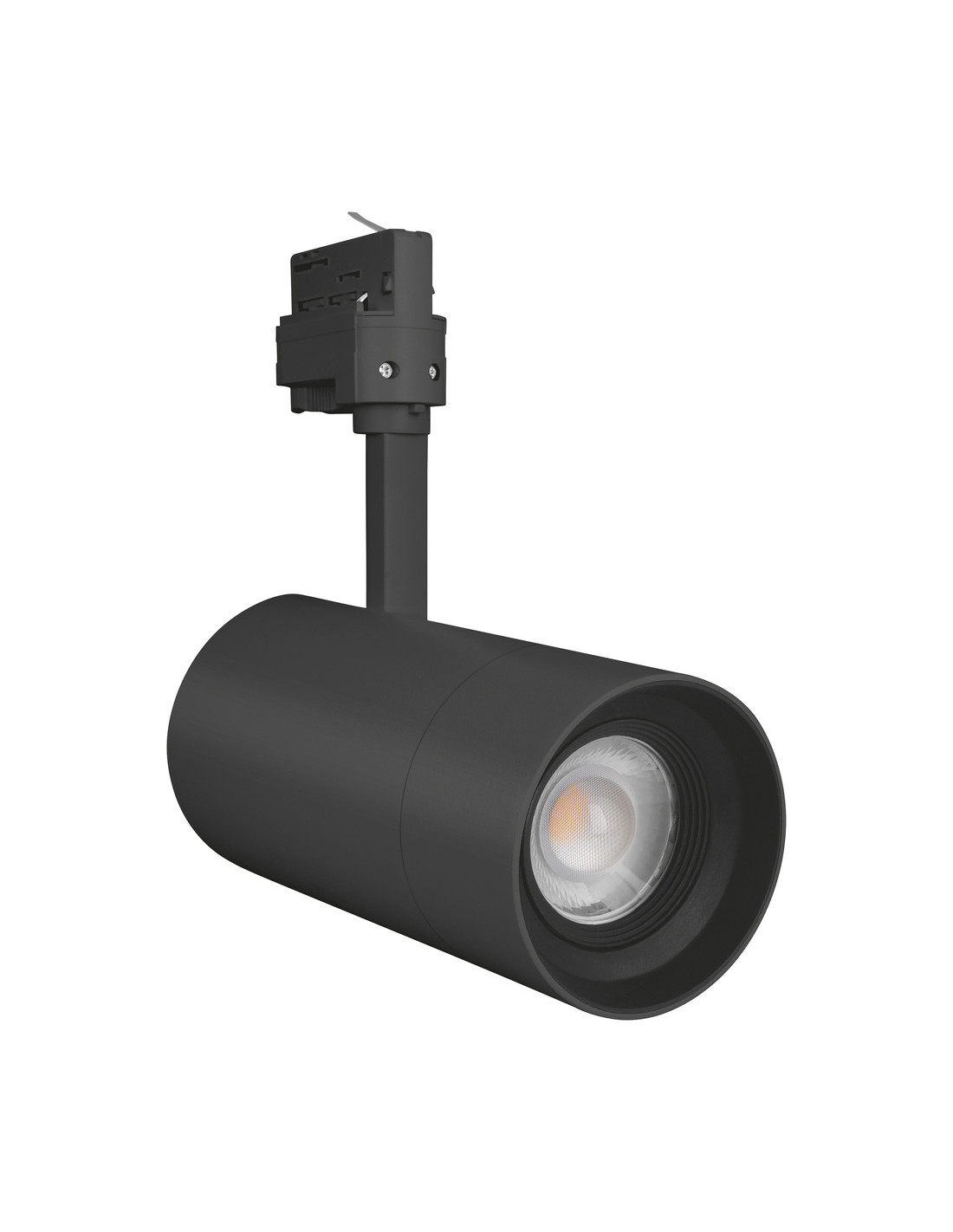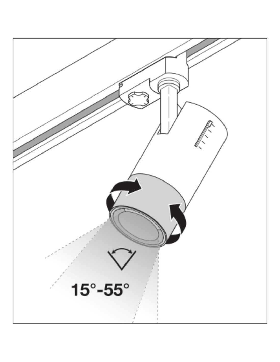 Cechy produktu: Mechaniczna regulacja kąta rozsyłu światła w zakresie od 15 ° do 55 °. Możliwość ściemniania (7% - 100%) przy pomocy potencjometru suwakowego umieszczonego na każdej oprawie. Wskaźnik oddawania barw Ra9: > 90. Początkowa jednolitość barw: 4 SDCM. Kąt obrotu: 350°, kąt odchylenia: 90°. Zgodność ze zunifikowanym językiem projektowania LEDVANCE (projekt SCALE). Solidna obudowa z odlewu ciśnieniowego aluminium. Dostępny w kolorze białym matowym (zbliżonym do RAL9016), matowym czarnym (zbliżonym do RAL9004). Skuteczność świetlna oprawy: do 70 lm/W. Zalety produktu: 3-fazowe oprawy punktowe, z możliwością ściemnianiania, klosz z mechaniczną regulacją zoom. W zestawie 3-fazowy adapter kompatybilny ze standardowymi listwami zasilającymi (GLOBAL, EUTRAC, POWERGEAR, STAFF, NORLUX, NUCO, NORDIC). Brak odwracania uwagi od oświetlanych obiektów dzięki minimalistycznej konstrukcji. Niewielkie tętnienie światła dzięki specjalnemu statecznikowi elektronicznemu. 5-letnia gwarancja. Obszary zastosowań: Bezpośredni zamiennik opraw oświetleniowych wykorzystujących lampy wyładowcze. Oświetlenie akcentujące. Galerie, muzea. Sklepy, przebieralnie, witryny sklepowe. Hotele, restauracje, sklepy. Porady dotyczące bezpieczeństwa: Wszystkie podłączenia elektryczne muszą być wykonane przez osobę wykwalifikowaną.. Uwaga, ryzyko porażenia prądem..