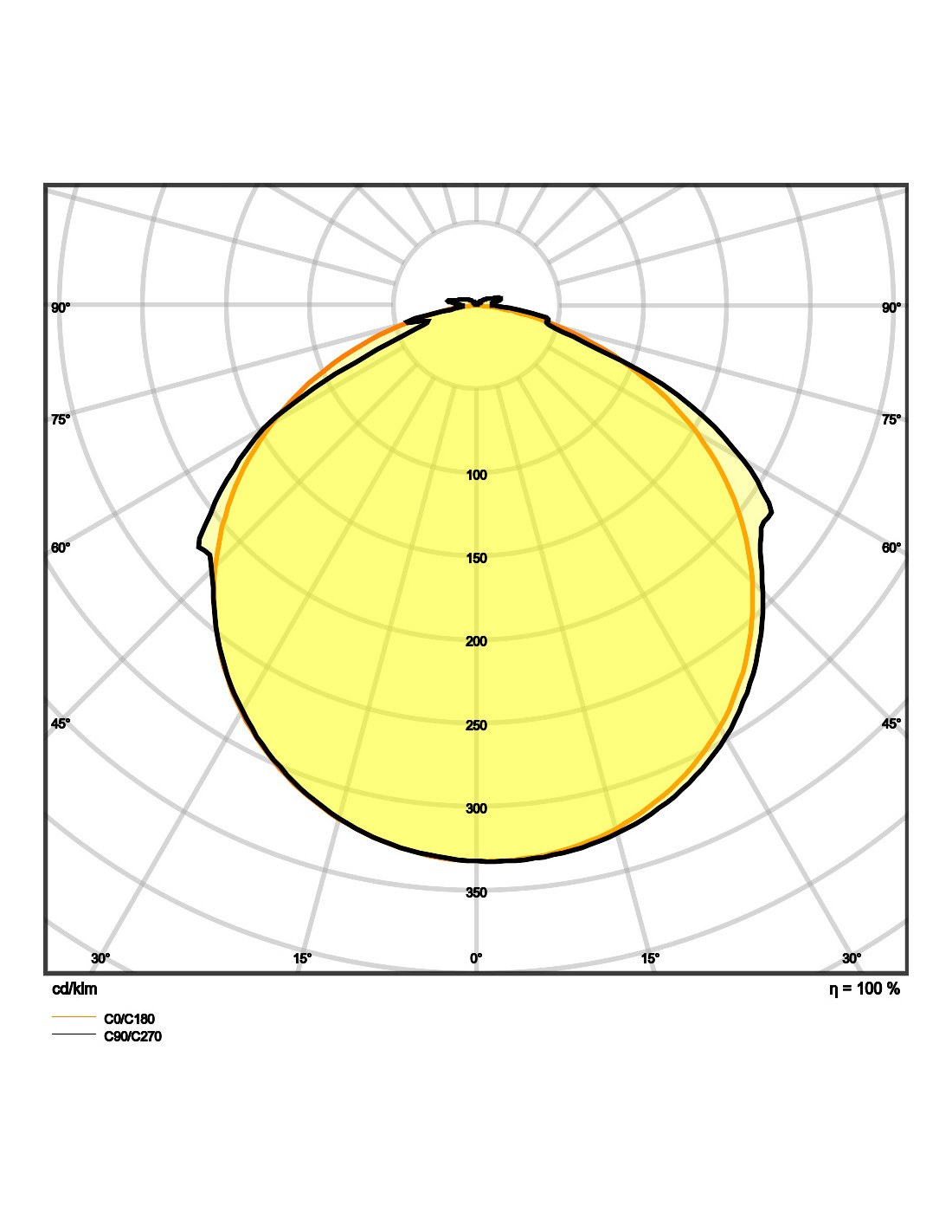 - Skuteczność świetlna oprawy (lm/W) 100