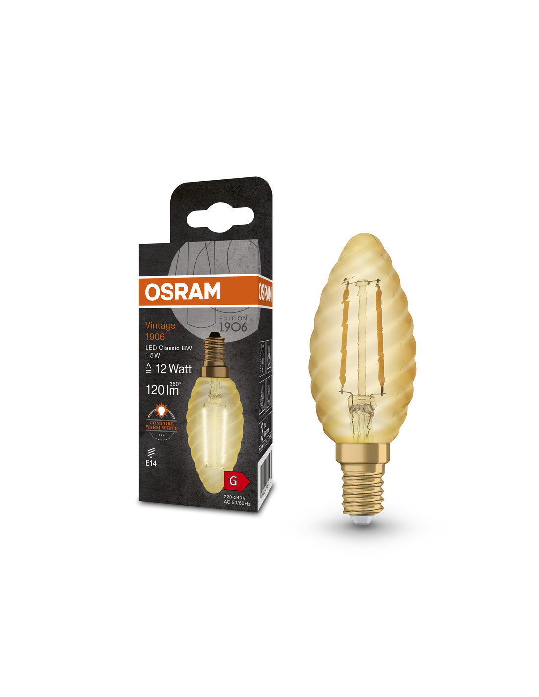 ŻARÓWKA LED 1906 VINTAGE LED CLBW12 1.5W/2400K 120LM FIL GOLD E14