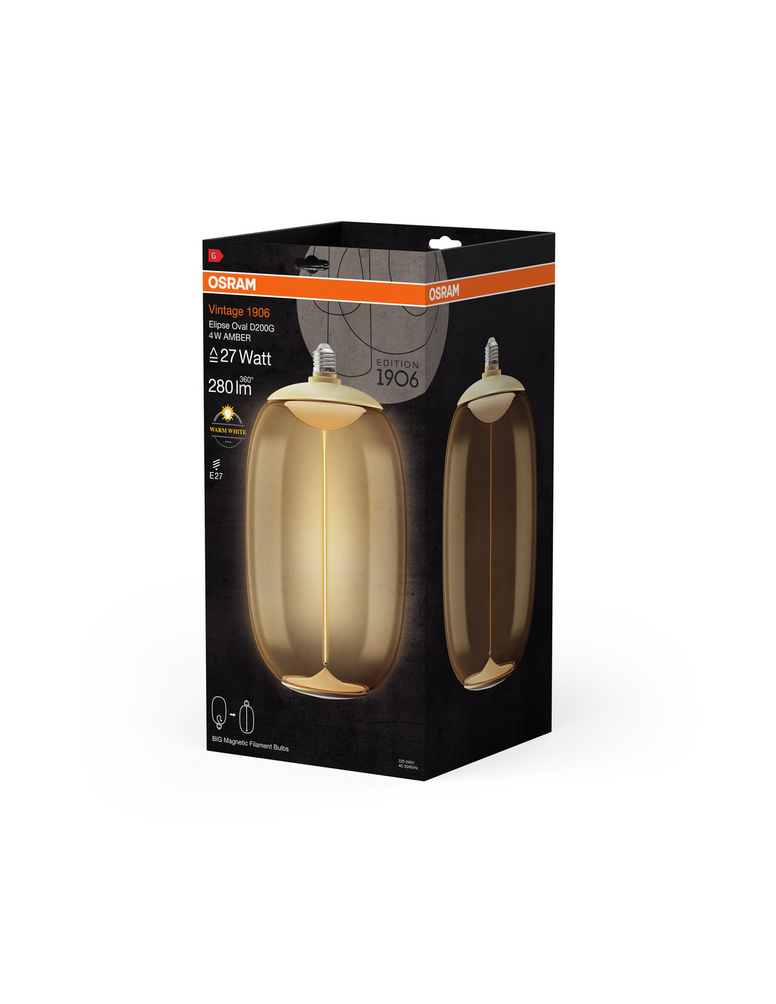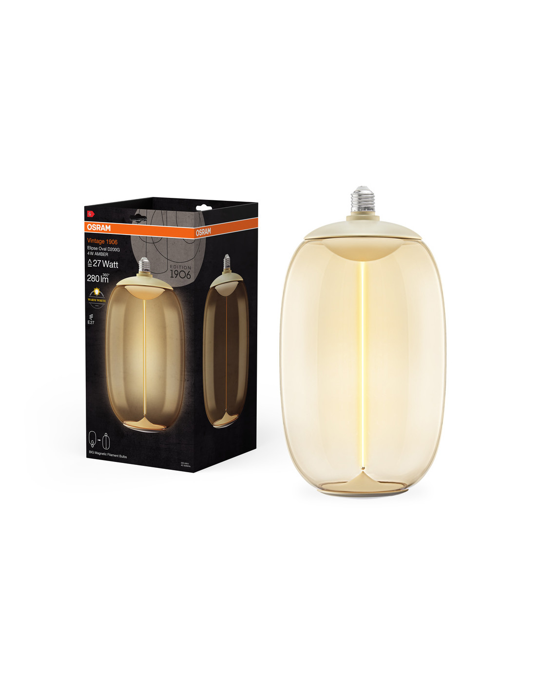 ŻARÓWKA LED 1906 VINTAGE LED MAGNETIC BIG ELIPSE OVAL AMBER27 FIL 4W 2700K 280LM E27