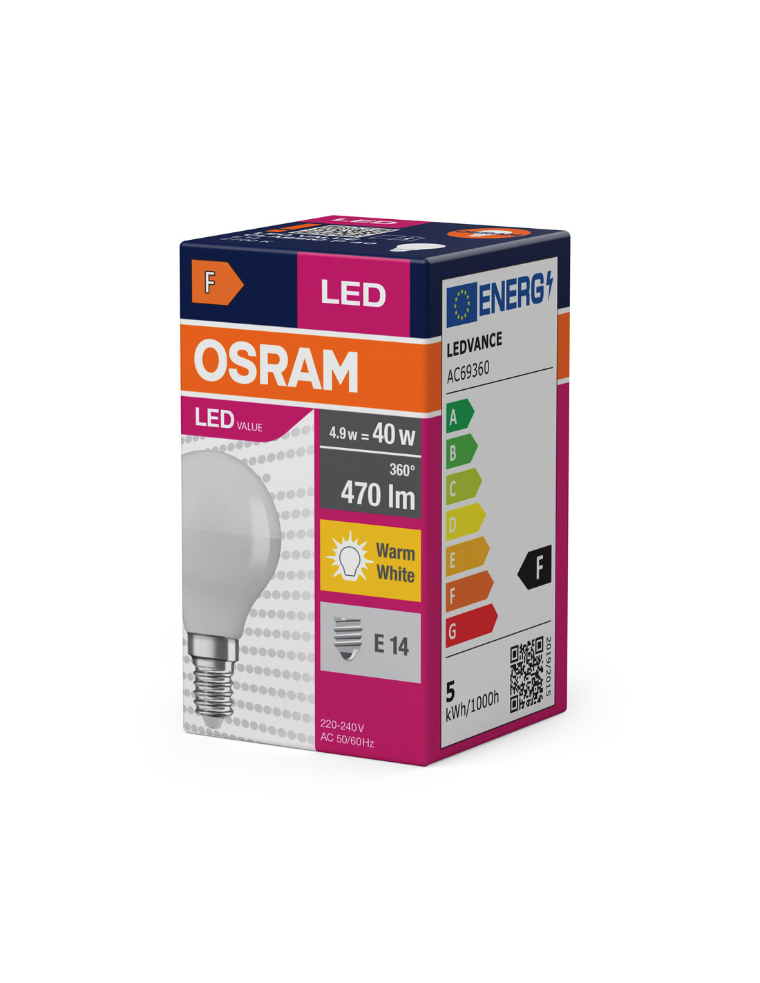 ŻARÓWKA LED VALUE CLP40 4.9W 2700K ciepła biała 230V FR E14