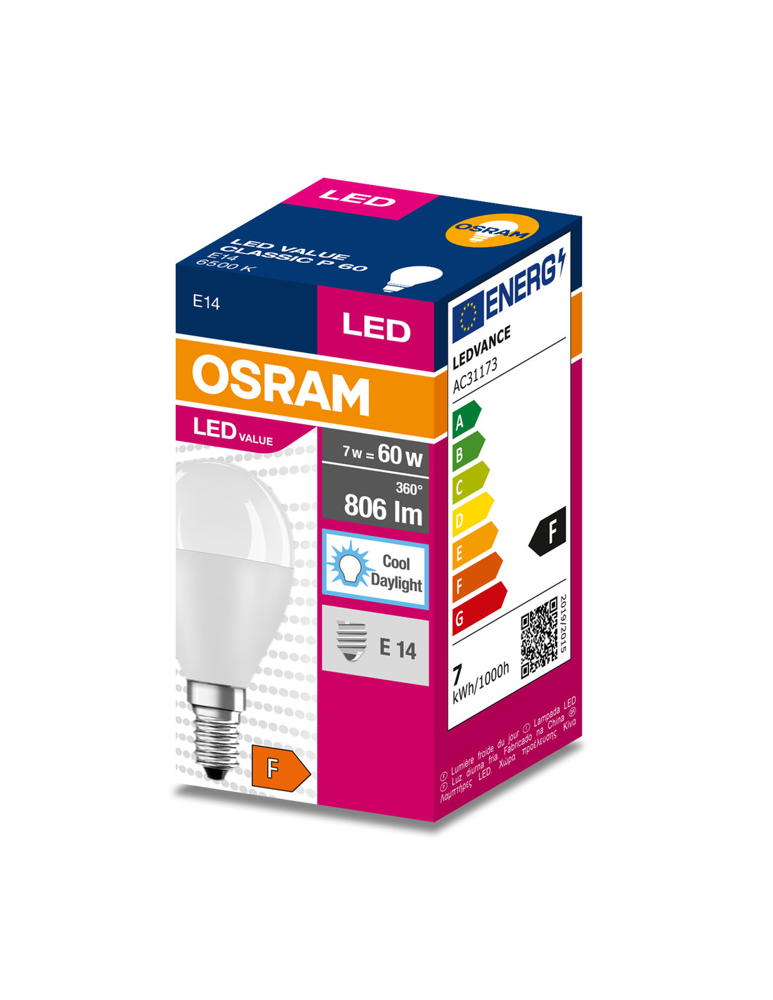 ŻARÓWKA LED VALUE CLP60 6,5W 6500K zimna biała 230V FR E14