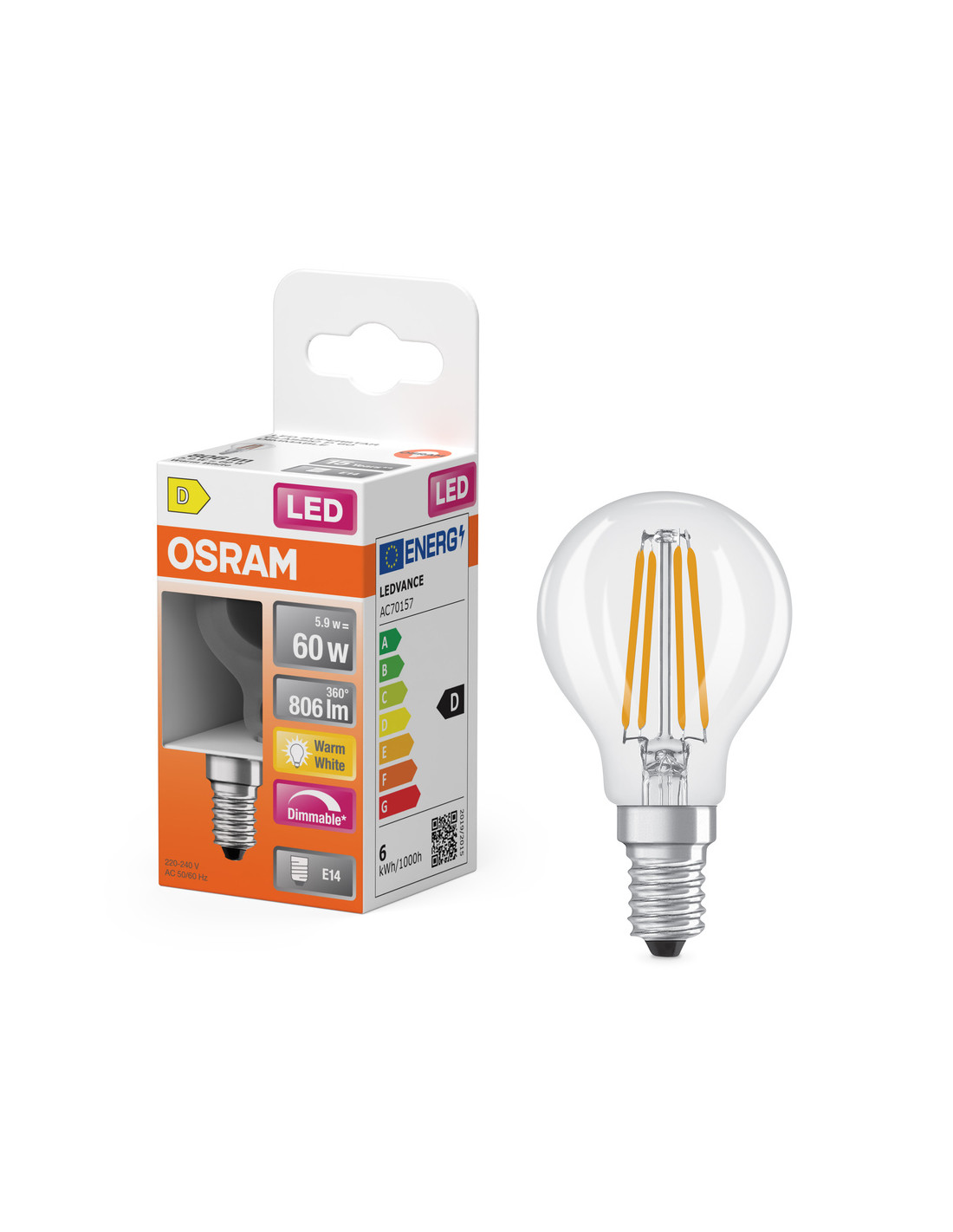 Cechy produktu: Lampy LED dla napięcia sieciowego. Ściemnialne (za pomocą licznych popularnych ściemniaczy, zobacz więcej www.ledvance.pl/dim). Kąt wiązki światła: do 300°. Trwałość do 15 000 h. Lampa wykonana ze szkła. Dobra jakość światła, wskaźnik oddawania barw Ra: 80; stała chromatyczność. Zalety produktu: Lampy wyposażone w innowacyjną technologię „włókien” LED. Niższe zużycie energii w porównaniu do lamp żarowych lub halogenowych. Natychmiast 100 % światła, bez czasu nagrzewania. Łatwy montaż zamiast zwykłych żarówek. Konstrukcja, wymiary i strumień świetlny porównywalne z tradycyjną żarówką. Obszary zastosowań: Doskonałe rozwiązanie do instalacji dekoracyjnych. Zastosowania domowe. Oświetlenie ogólne. Do użytku na zewnątrz tylko w odpowiednich oprawach zewnętrznych. Porady dotyczące bezpieczeństwa: Nie dotykaj lampy, jeśli jest stłuczona.. Nie wolno używać, jeśli zewnętrzne źródło światła jest uszkodzone..
