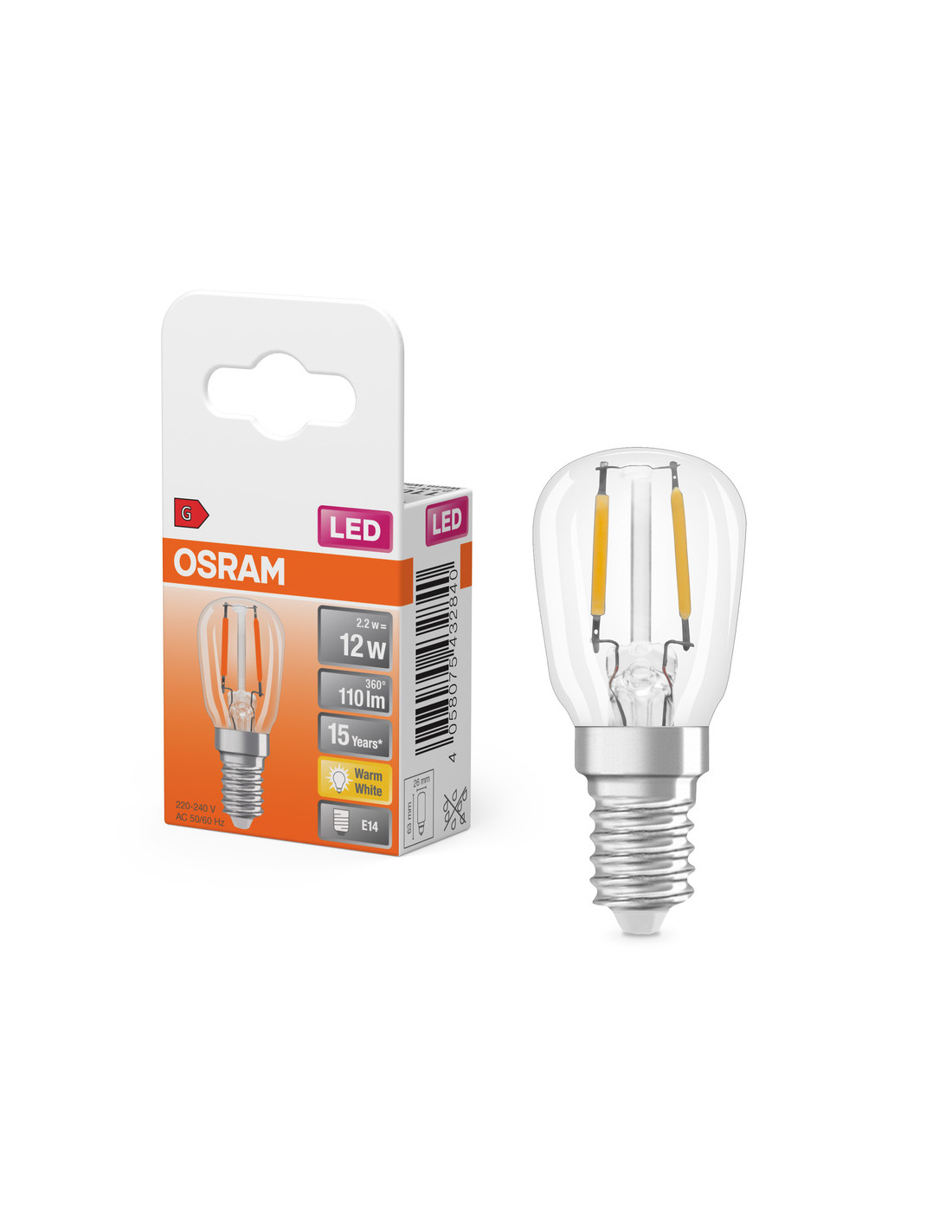 Cechy produktu: Zamienniki LED dla konwencjonalnych żarówek wysokonapięciowych. Dobra jakość światła, wskaźnik oddawania barw Ra: 80; stała chromatyczność. Zalety produktu: Wyjątkowo małe wymiary. Równomierny rozsył światła we wszystkich kierunkach. Idealne do zastosowania dekoracyjnego oraz do eksploatacji bez oprawy. Długa trwałość do 15 000 godzin. 3-letnia gwarancja. Niższe zużycie energii w porównaniu do lamp żarowych lub halogenowych. Obszary zastosowań: Zamrażarki domowe. Nastrojowe oświetlenie akcentujące w całym domu. Małe oprawy designerskie. Maszyny szwalnicze. Do użytku na zewnątrz tylko w odpowiednich oprawach zewnętrznych. Porady dotyczące bezpieczeństwa: Nie dotykaj lampy, jeśli jest stłuczona.. Nie wolno używać, jeśli zewnętrzne źródło światła jest uszkodzone..