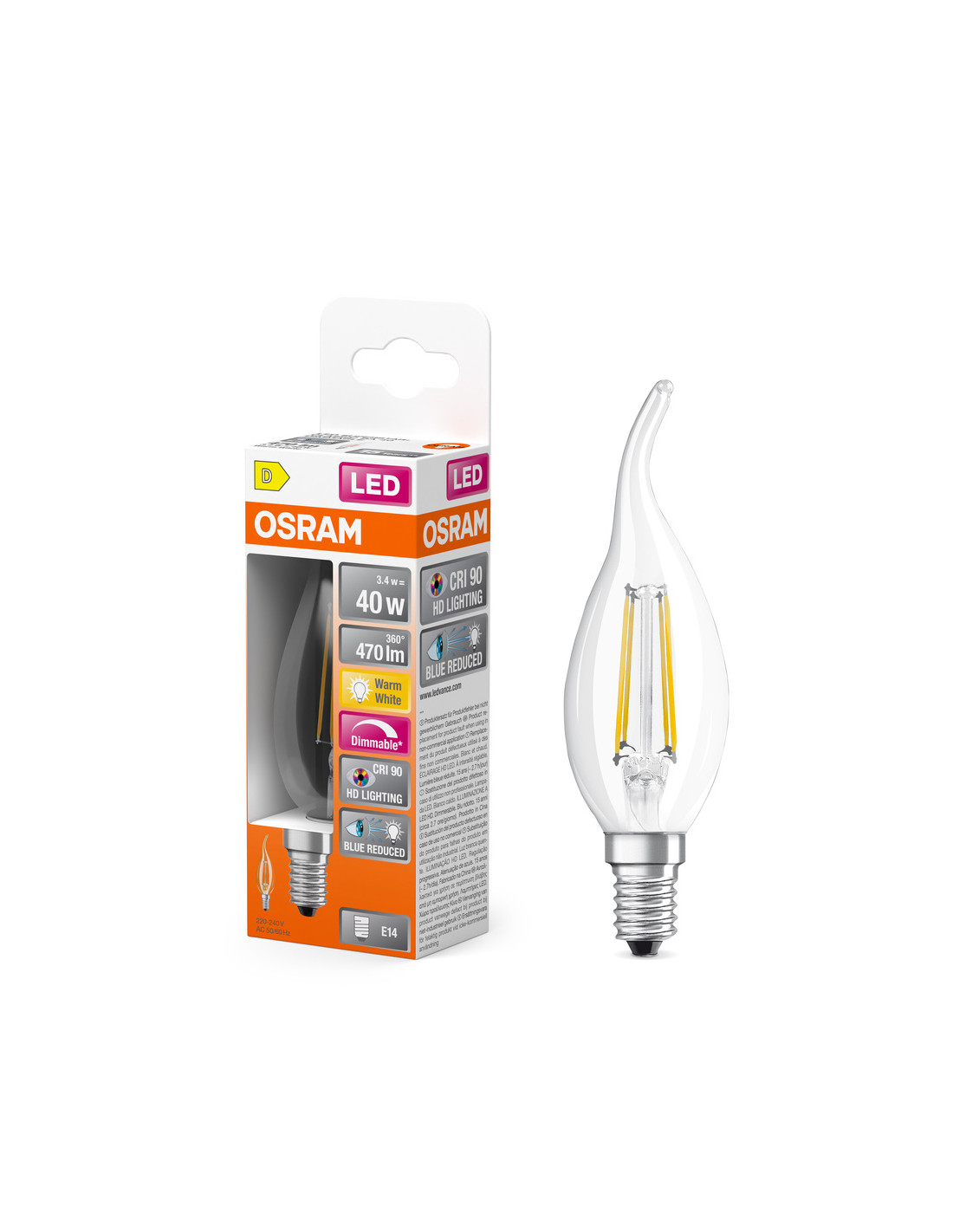 Cechy produktu: Lampy LED dla napięcia sieciowego. Kąt wiązki światła: do 300°. Ściemnialne. Wskaźnik oddawania barw Ra: 90. Zalety produktu: Lampy wyposażone w innowacyjną technologię „włókien” LED. Wygląd, wymiary i strumień świetlny porównywalne z żarówkami halogenowymi. Widmo światła naturalnego z doskonałym wskaźnikiem oddawania barw Ra > 90. Znacznie zmniejszony zakres niebieskiego światła. Poprawiony komfort widzenia i zmniejszone zmęczenie wzroku. Niższe zużycie energii w porównaniu do lamp żarowych lub halogenowych. Natychmiast 100 % światła, bez czasu nagrzewania. Niskie tętnienie światła. Obszary zastosowań: Doskonałe rozwiązanie do instalacji dekoracyjnych. Zastosowania domowe. Oświetlenie ogólne. Do użytku na zewnątrz tylko w odpowiednich oprawach zewnętrznych. Porady dotyczące bezpieczeństwa: Nie dotykaj lampy, jeśli jest stłuczona.. Nie wolno używać, jeśli zewnętrzne źródło światła jest uszkodzone..