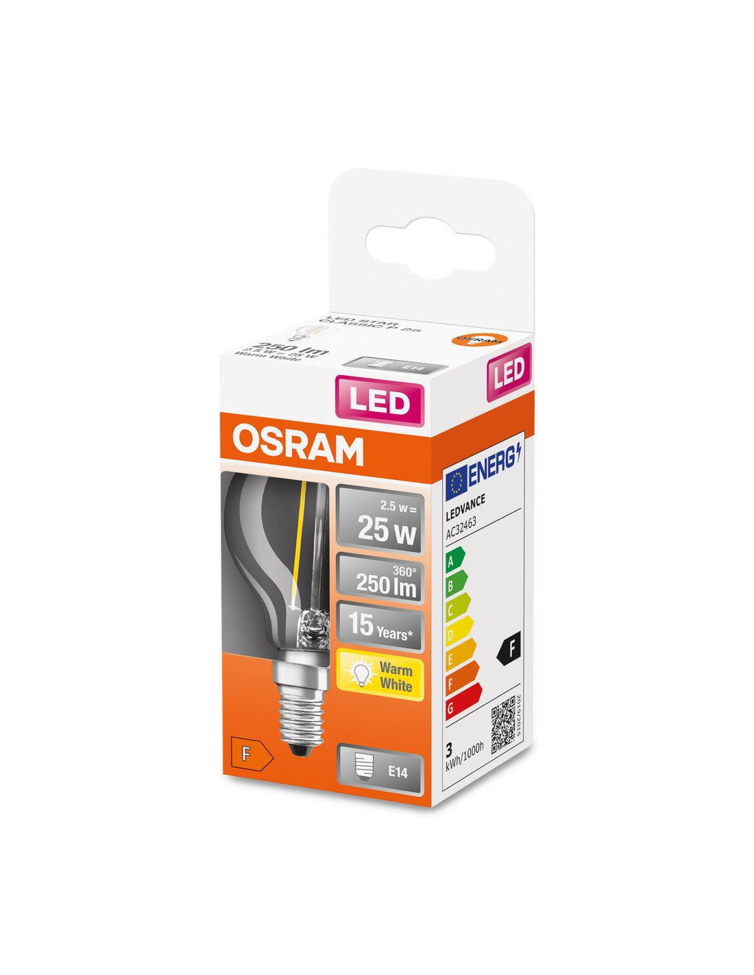 Cechy produktu: Profesjonalne lampy dla napięcia sieciowego. Brak możliwości regulacji strumienia świetlnego. Kąt wiązki światła: do 300°. Trwałość do 15 000 h. Lampa wykonana ze szkła. Dobra jakość światła, wskaźnik oddawania barw Ra: 80; stała chromatyczność. Zalety produktu: Niższe zużycie energii w porównaniu do lamp żarowych lub halogenowych. Lampy wyposażone w innowacyjną technologię „włókien” LED. Brak promieniowania UV i podczerwonego w wiązce światła. Natychmiast 100 % światła, bez czasu nagrzewania. Łatwy montaż zamiast zwykłych żarówek. Niskie obciążenie cieplne (w porównaniu ze standardowym produktem referencyjnym). Wygląd, wymiary i strumień świetlny porównywalne z tradycyjnymi żarówkami lub żarówkami halogenowymi. Obszary zastosowań: Doskonałe rozwiązanie do instalacji dekoracyjnych. Zastosowania domowe. Oświetlenie ogólne. Do użytku na zewnątrz tylko w odpowiednich oprawach zewnętrznych. Porady dotyczące bezpieczeństwa: Nie dotykaj lampy, jeśli jest stłuczona.. Nie wolno używać, jeśli zewnętrzne źródło światła jest uszkodzone..