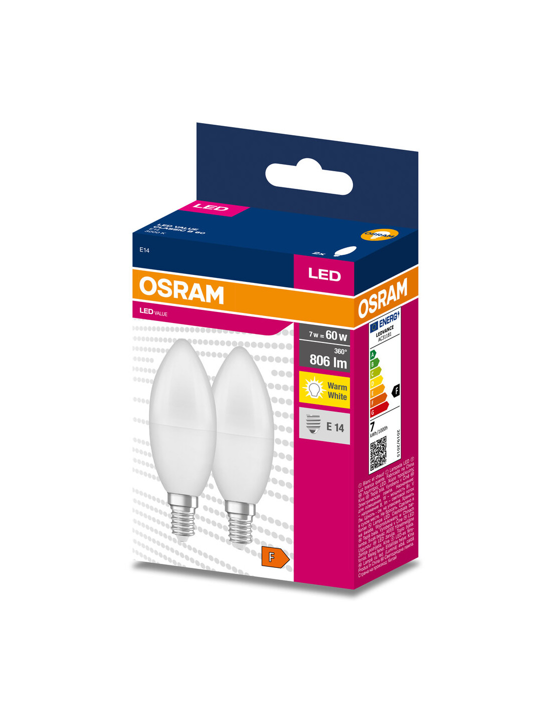 ŻARÓWKA LED 2-PAK VALUE CLB60 7W 3000K ciepła biała 806LM FR E14