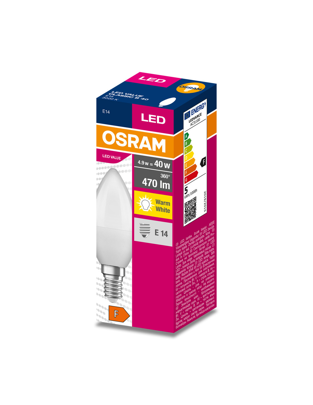 ŻARÓWKA LED VALUE CLB40 4.9W 3000K ciepła biała 470LM 230V FR E14