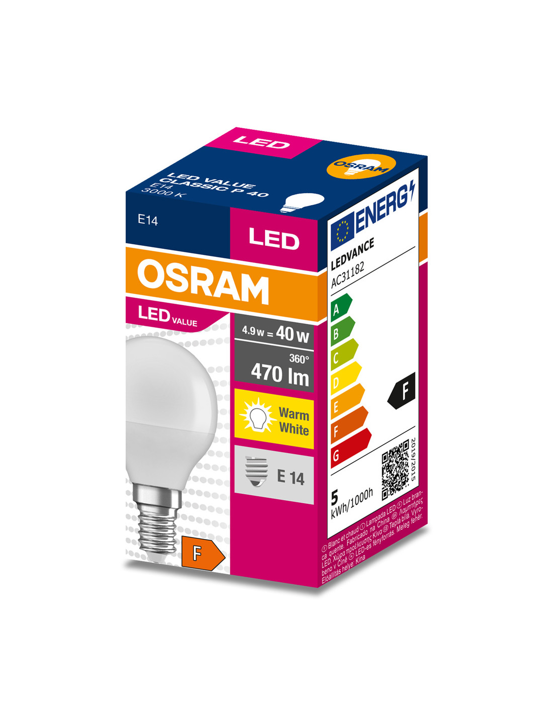 ŻARÓWKA LED VALUE CLP40 4.9W 3000K ciepła biała 230V FR E14