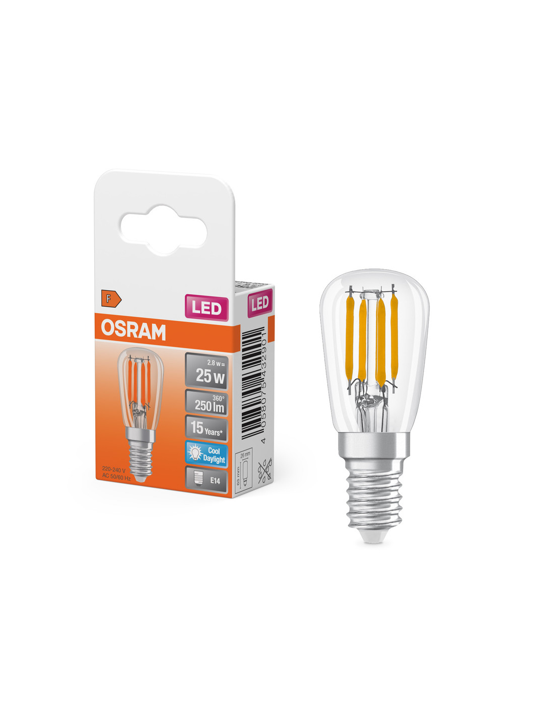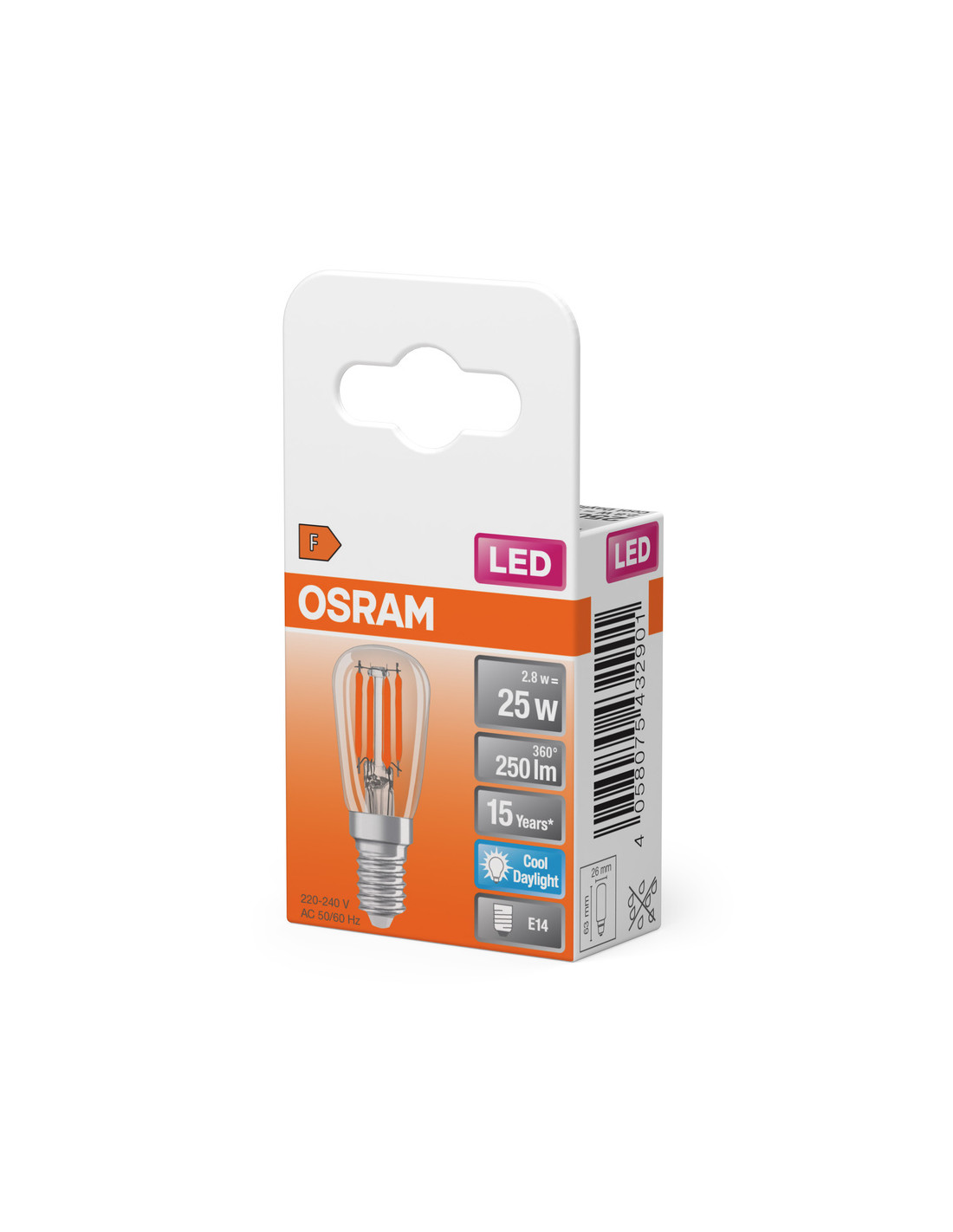 Cechy produktu: Zamienniki LED dla konwencjonalnych żarówek wysokonapięciowych. Dobra jakość światła, wskaźnik oddawania barw Ra: 80; stała chromatyczność. Zalety produktu: Wyjątkowo małe wymiary. Równomierny rozsył światła we wszystkich kierunkach. Idealne do zastosowania dekoracyjnego oraz do eksploatacji bez oprawy. Długa trwałość do 15 000 godzin. 3-letnia gwarancja. Niższe zużycie energii w porównaniu do lamp żarowych lub halogenowych. Obszary zastosowań: Zamrażarki domowe. Nastrojowe oświetlenie akcentujące w całym domu. Małe oprawy designerskie. Maszyny szwalnicze. Do użytku na zewnątrz tylko w odpowiednich oprawach zewnętrznych. Porady dotyczące bezpieczeństwa: Nie dotykaj lampy, jeśli jest stłuczona.. Nie wolno używać, jeśli zewnętrzne źródło światła jest uszkodzone..