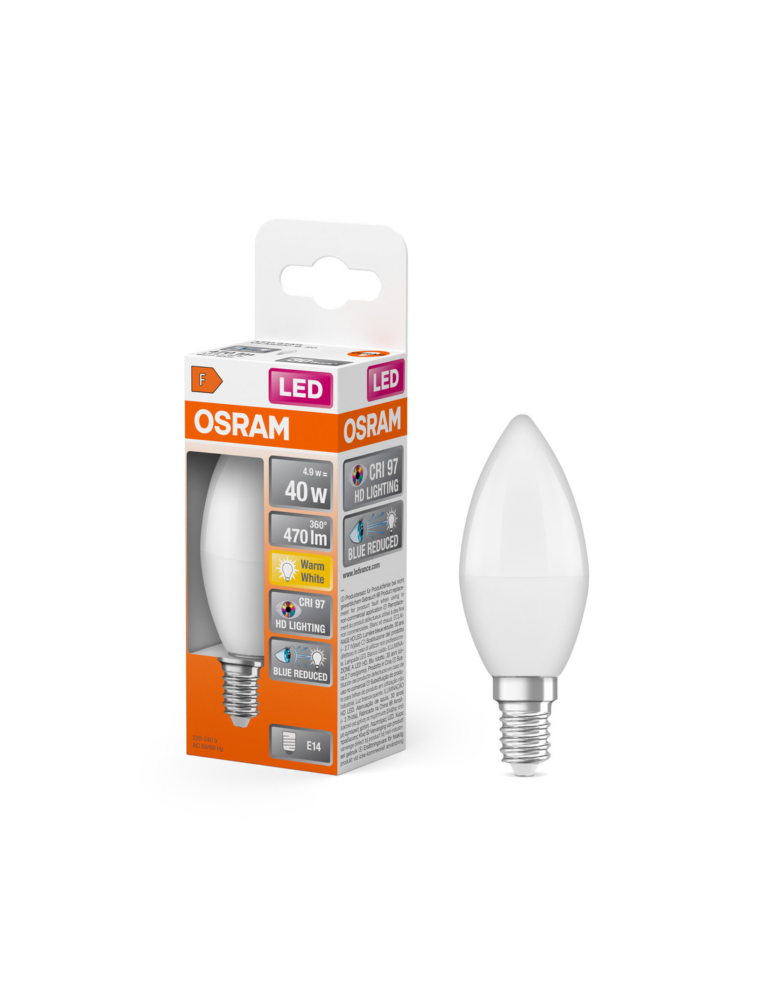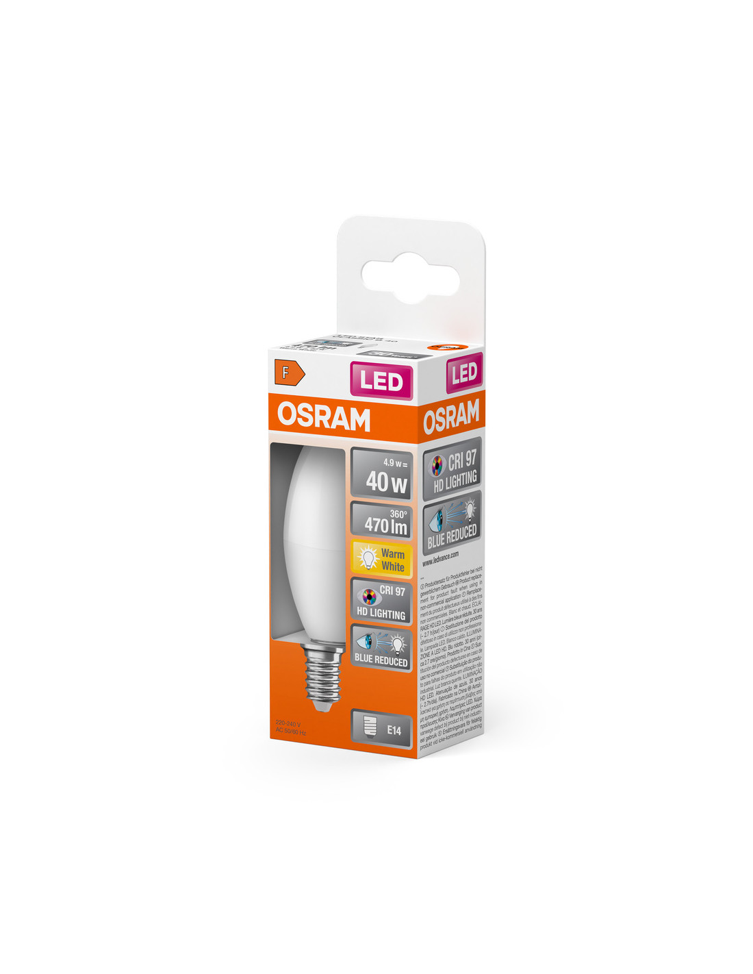 Cechy produktu: Lampy LED dla napięcia sieciowego. Wskaźnik oddawania barw CRI 97. Zalety produktu: Wygląd, wymiary i strumień świetlny porównywalne z żarówkami halogenowymi. Naturalne spektrum światła z doskonałym oddawaniem barw CRI 97. Znacznie zmniejszony zakres niebieskiego światła. Poprawiony komfort widzenia i zmniejszone zmęczenie wzroku. Niższe zużycie energii w porównaniu do lamp żarowych lub halogenowych. Natychmiast 100 % światła, bez czasu nagrzewania. Niskie tętnienie światła. Obszary zastosowań: Zastosowania domowe. Oświetlenie ogólne. Do użytku na zewnątrz tylko w odpowiednich oprawach zewnętrznych. Porady dotyczące bezpieczeństwa: Nie dotykaj lampy, jeśli jest stłuczona.. Nie wolno używać, jeśli zewnętrzne źródło światła jest uszkodzone..