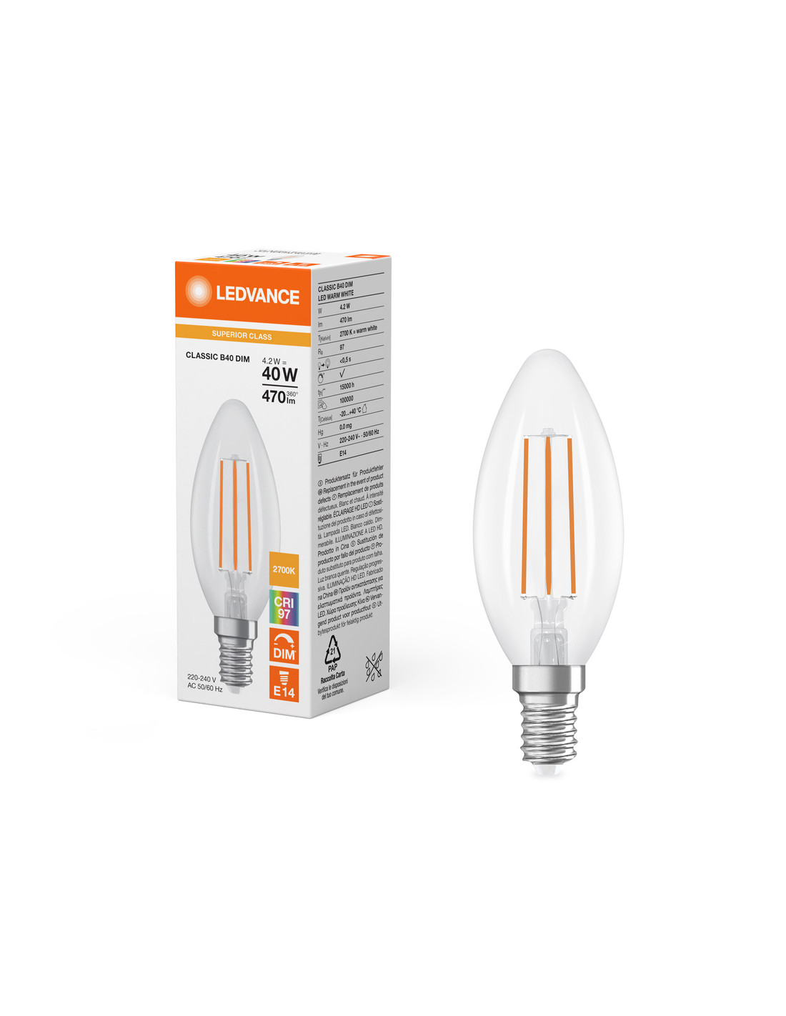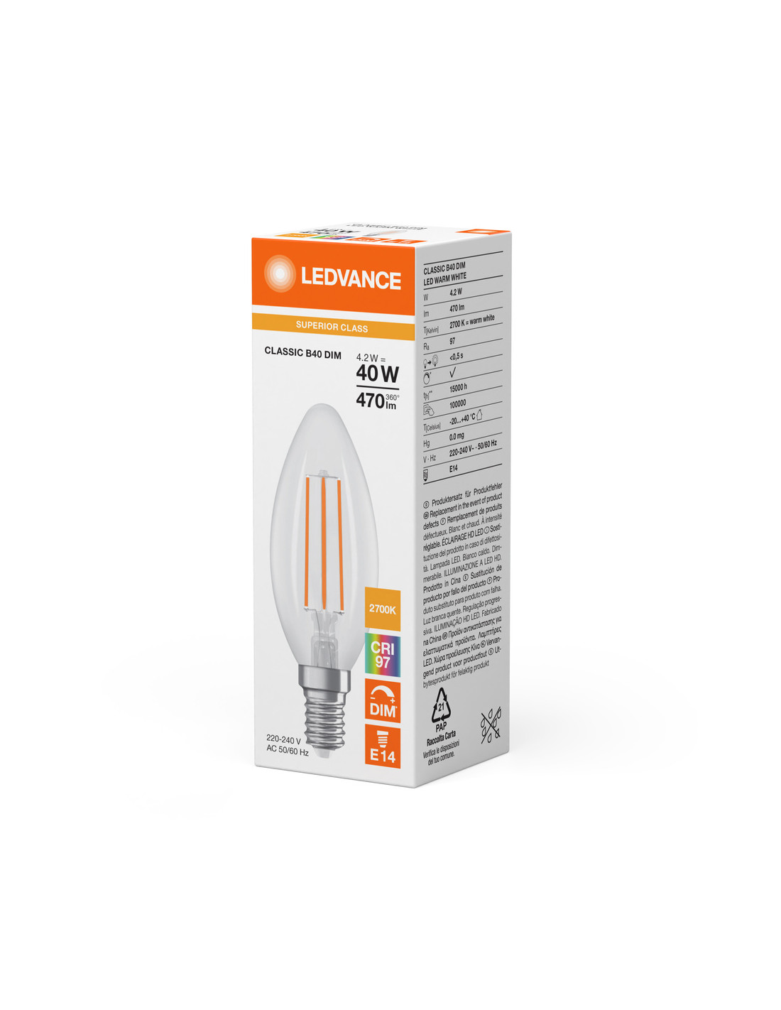 ŻARÓWKA LED S CLB40 DIM 4,2W 2700K ciepła biała CRI90 E14 CRI97 FIL CL 470LM