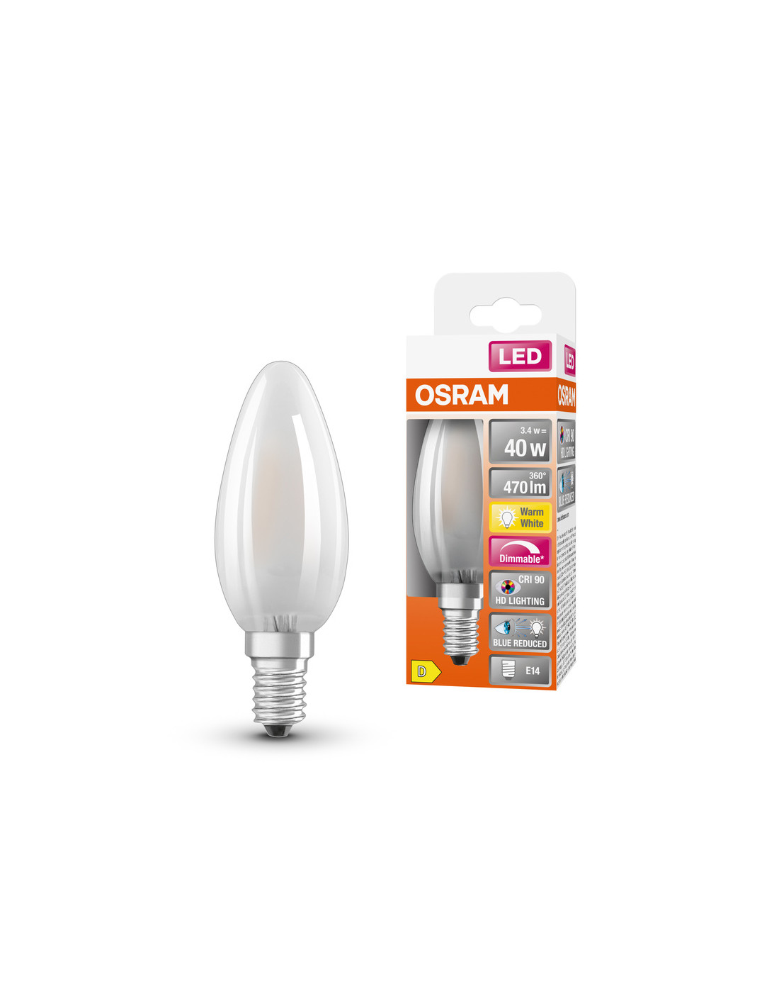 ŻARÓWKA LED SUPERSTAR PLUS RF CLB40 DIM 3,4W 2700K ciepła biała E14 GL FR 470LM