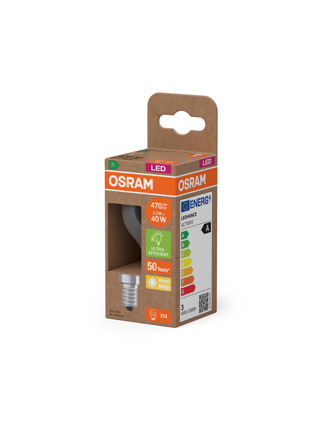 ŻARÓWKA LED ENERGY CLASS CLP40 2,2W 2700K ciepła biała E14 470LM FIL EE KLASA A