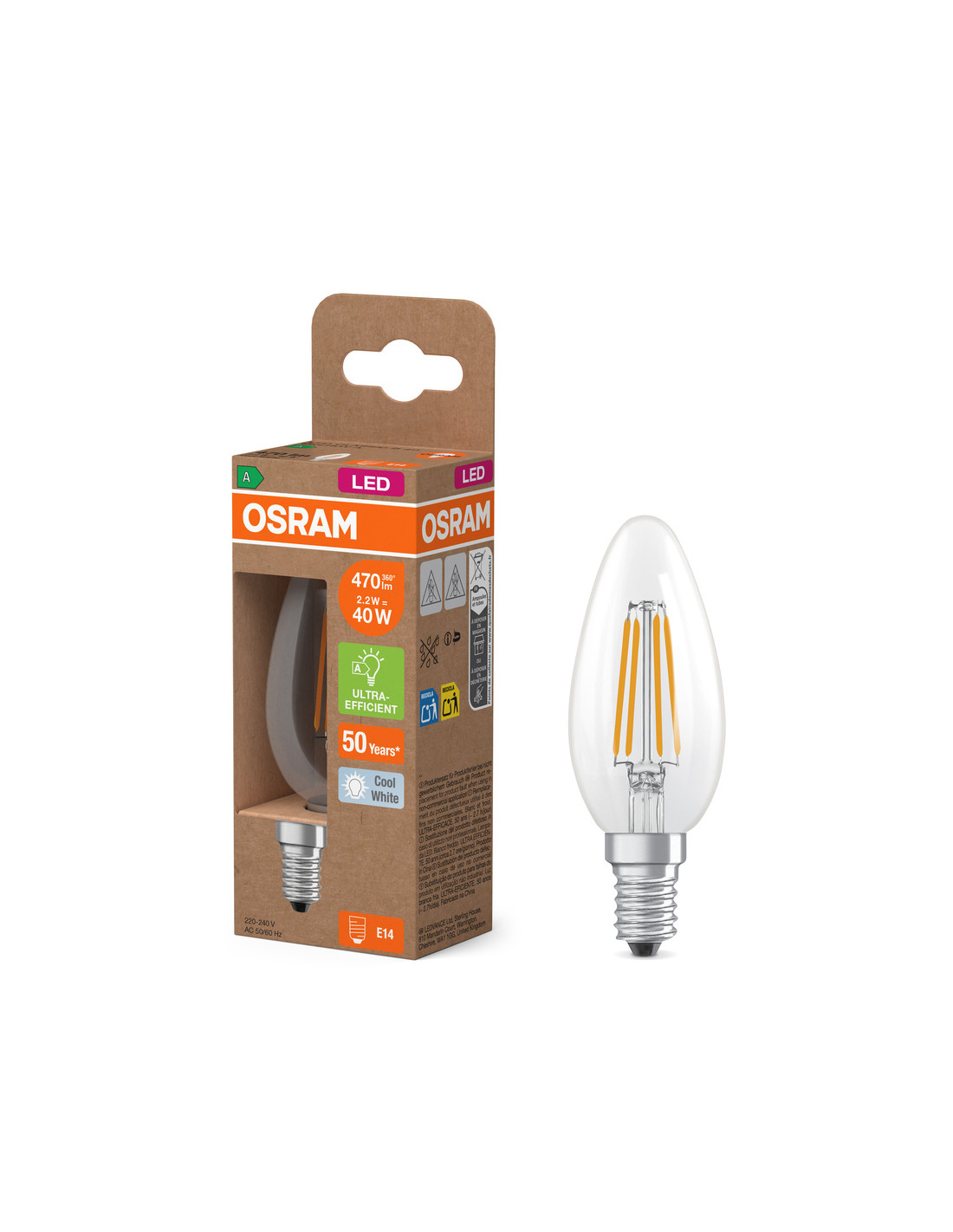 Cechy produktu: Lampy LED dla napięcia sieciowego. Kąt wiązki światła: do 300°. Długa trwałość do 50 000 godzin. Bardzo duża liczba cykli przełączania 500 000. Skuteczność świetlna do 210 lm/W. Zalety produktu: Lampy wyposażone w innowacyjną technologię „włókien” LED. Wygląd, wymiary i strumień świetlny porównywalne z żarówkami halogenowymi. Niskie zużycie energii. Natychmiast 100 % światła, bez czasu nagrzewania. Niskie tętnienie światła. Obszary zastosowań: Doskonałe rozwiązanie do instalacji dekoracyjnych. Zastosowania domowe. Oświetlenie ogólne. Do użytku na zewnątrz tylko w odpowiednich oprawach zewnętrznych. Porady dotyczące bezpieczeństwa: Nie dotykaj lampy, jeśli jest stłuczona.. Nie wolno używać, jeśli zewnętrzne źródło światła jest uszkodzone..