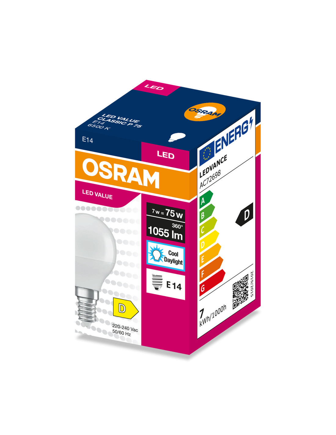 ŻARÓWKA LED VALUE CLP75 7W 6500K zimna biała 1055LM FR E14