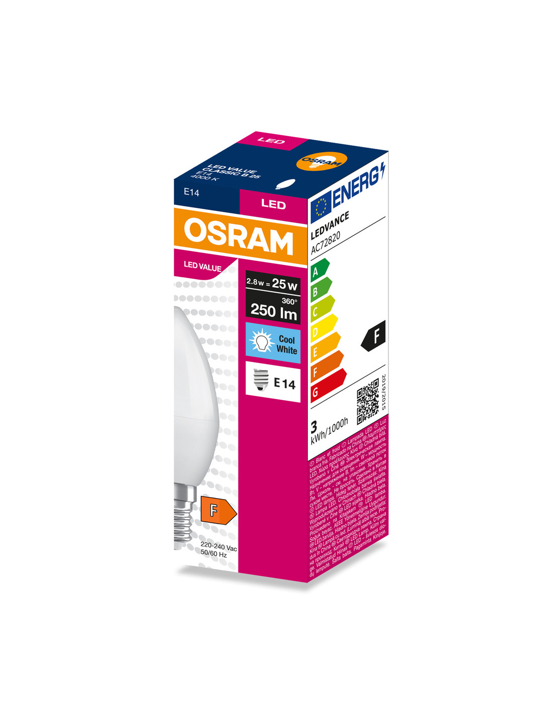 ŻARÓWKA LED VALUE CLB25 2.8W 4000K neutralna biała 250LM FR E14