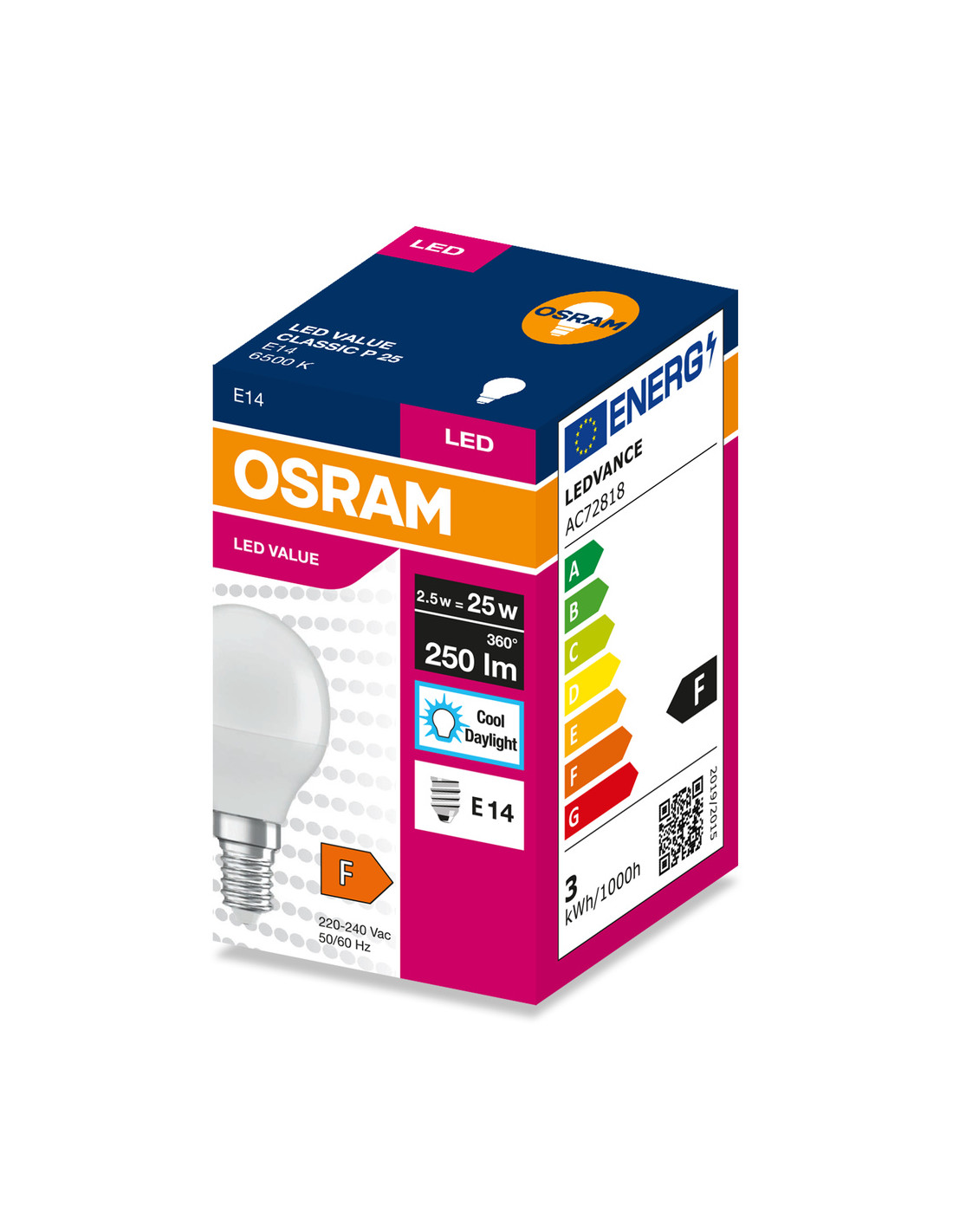 ŻARÓWKA LED VALUE CLP25 2.5W 6500K zimna biała 250LM FR E14