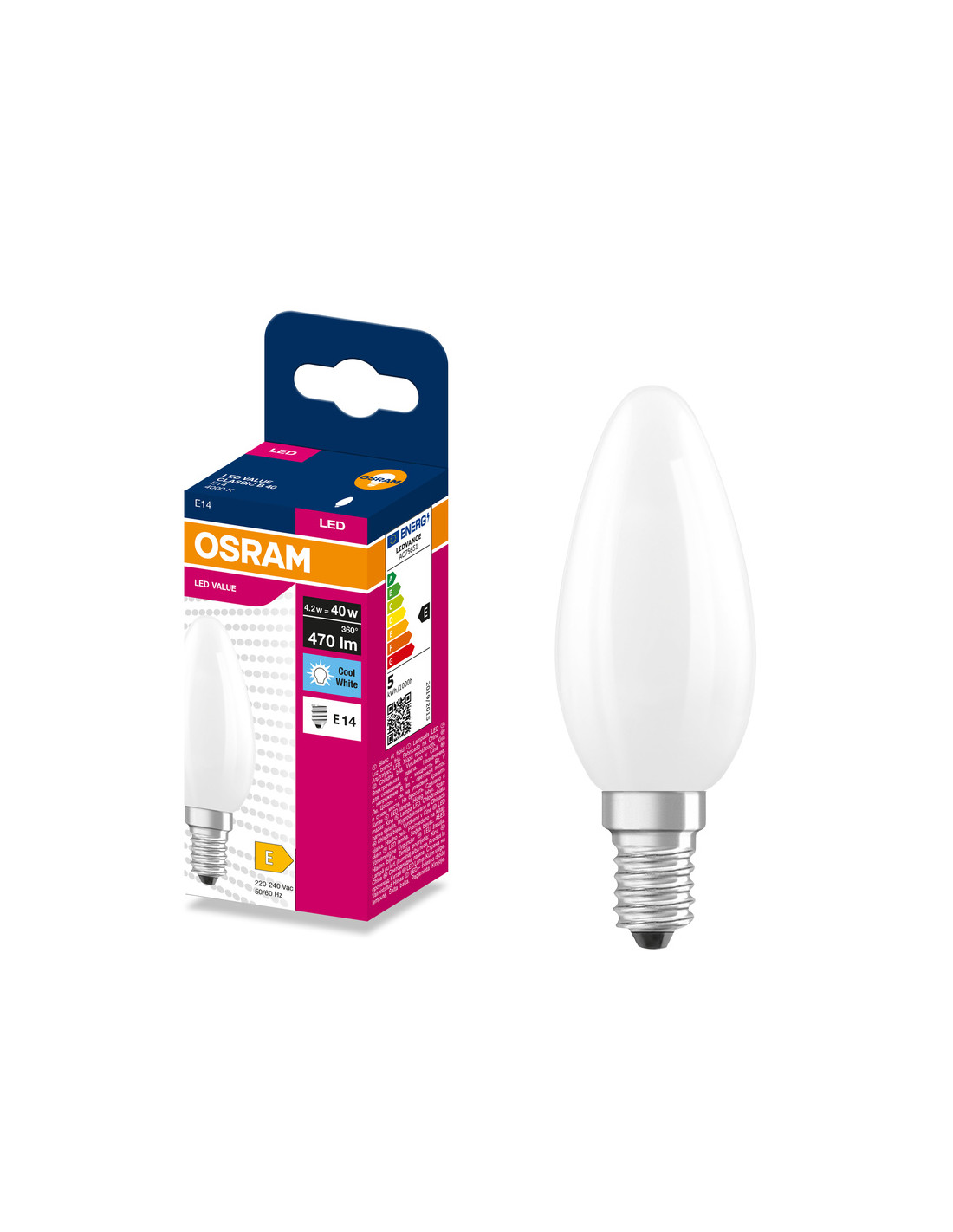 ŻARÓWKA LED VALUE RF CLB40 4,2W 400K neutralna biała 470LM FIL FR E14