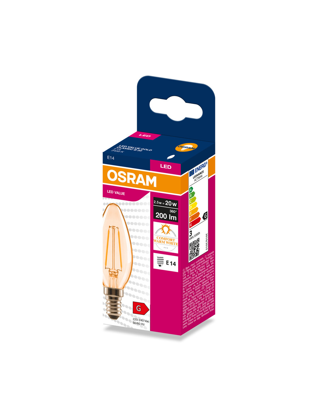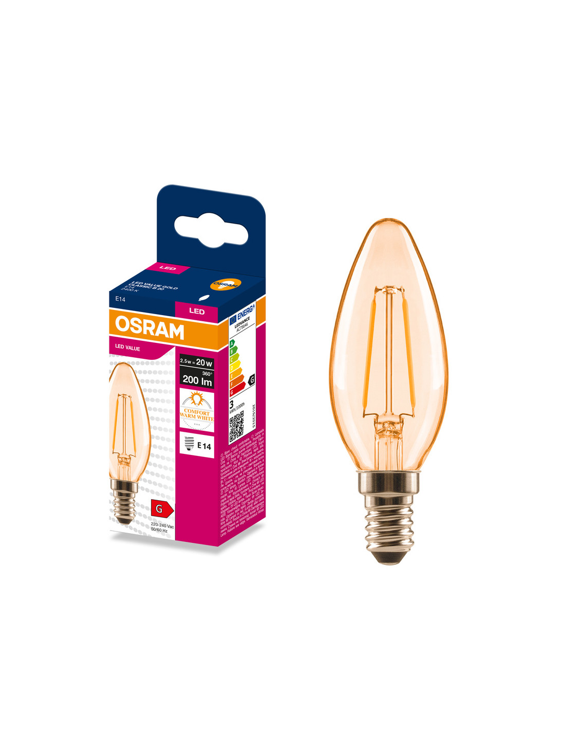ŻARÓWKA LED VALUE RF CLB20 2,5W 2400K 200LM FIL GOLD E14