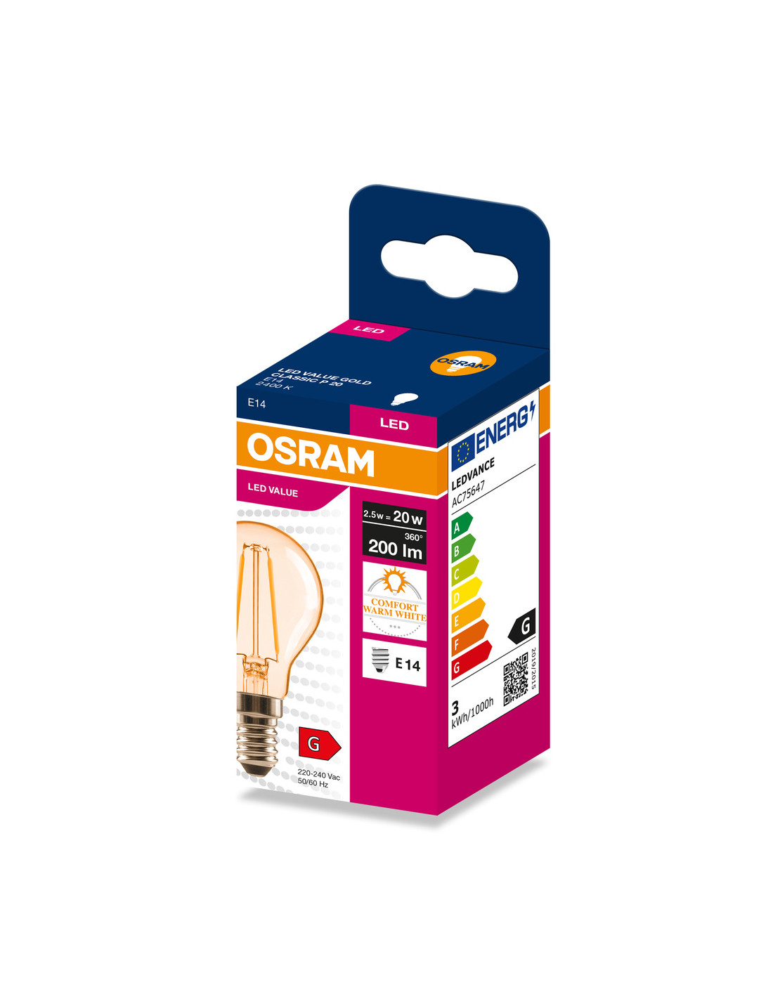 Cechy produktu: LED zamienniki tradycyjnych żarówek. Kąt wiązki światła: do 300°. Trwałość do 15 000 h. Dobre oddawanie barw (Ra 80) i stabilność braw przez cały czas eksploatacji lampy. Brak możliwości regulacji strumienia świetlnego. Zalety produktu: Wygląd, wymiary i strumień świetlny porównywalne z tradycyjnymi żarówkami lub żarówkami halogenowymi. Niższe zużycie energii w porównaniu do lamp żarowych lub halogenowych. Brak promieniowania UV i podczerwonego w wiązce światła. Łatwy montaż zamiast zwykłych żarówek. Natychmiast 100 % światła, bez czasu nagrzewania. Obszary zastosowań: Doskonałe rozwiązanie do instalacji dekoracyjnych. Zastosowania domowe. Oświetlenie ogólne. Do użytku na zewnątrz tylko w odpowiednich oprawach zewnętrznych. Porady dotyczące bezpieczeństwa: Nie dotykaj lampy, jeśli jest stłuczona.. Nie wolno używać, jeśli zewnętrzne źródło światła jest uszkodzone..