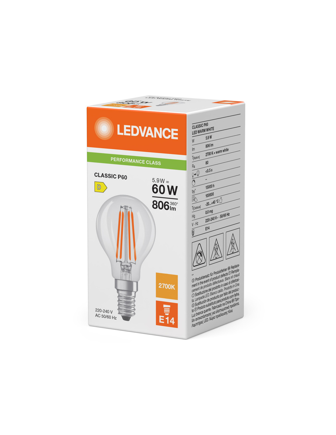 ŻARÓWKA LED P CLP60 5,9W 2700K ciepła biała E14 FIL CL 806LM