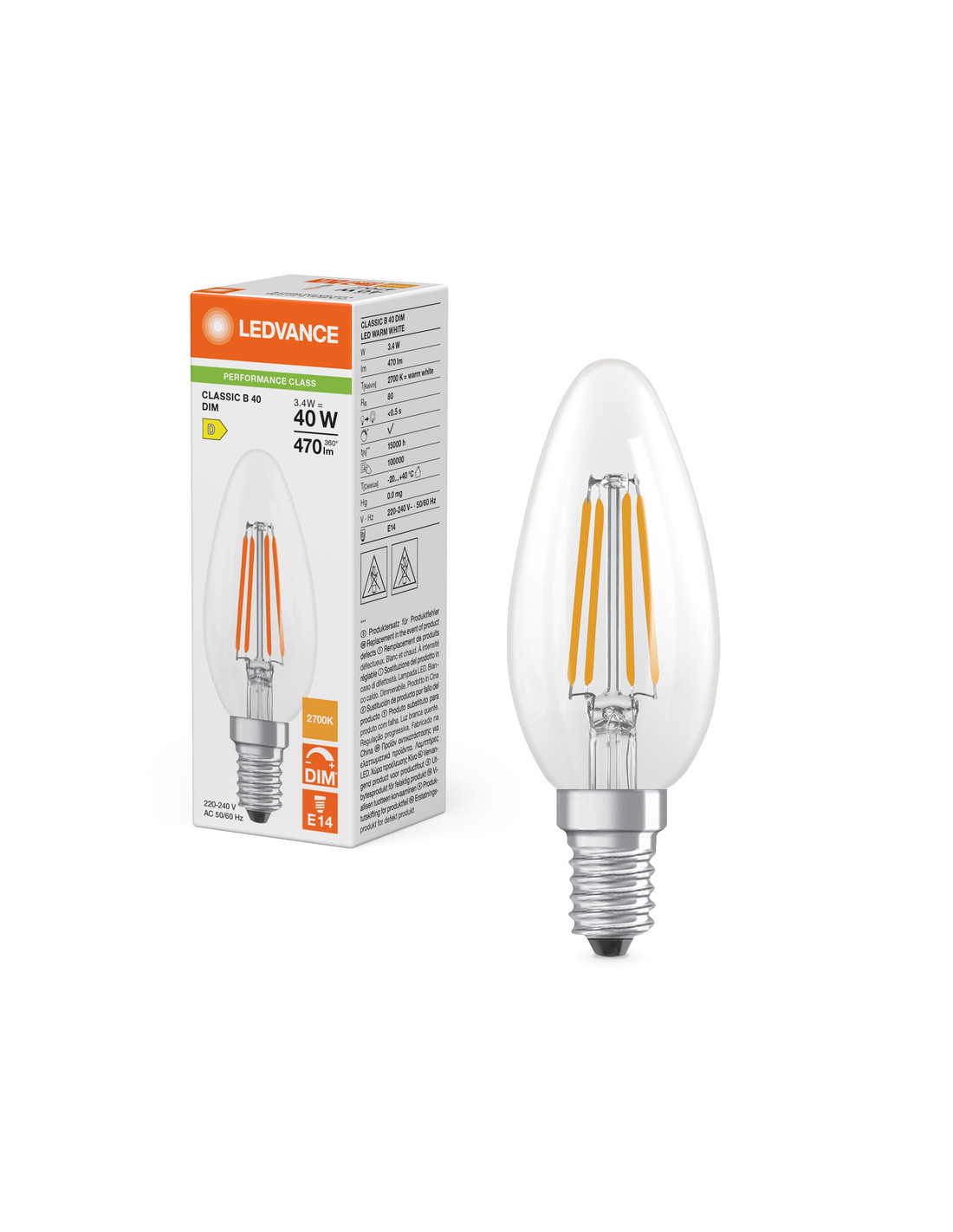 ŻARÓWKA LED P CLB40 DIM 3,4W 2700K ciepła biała E14 FIL CL 470LM