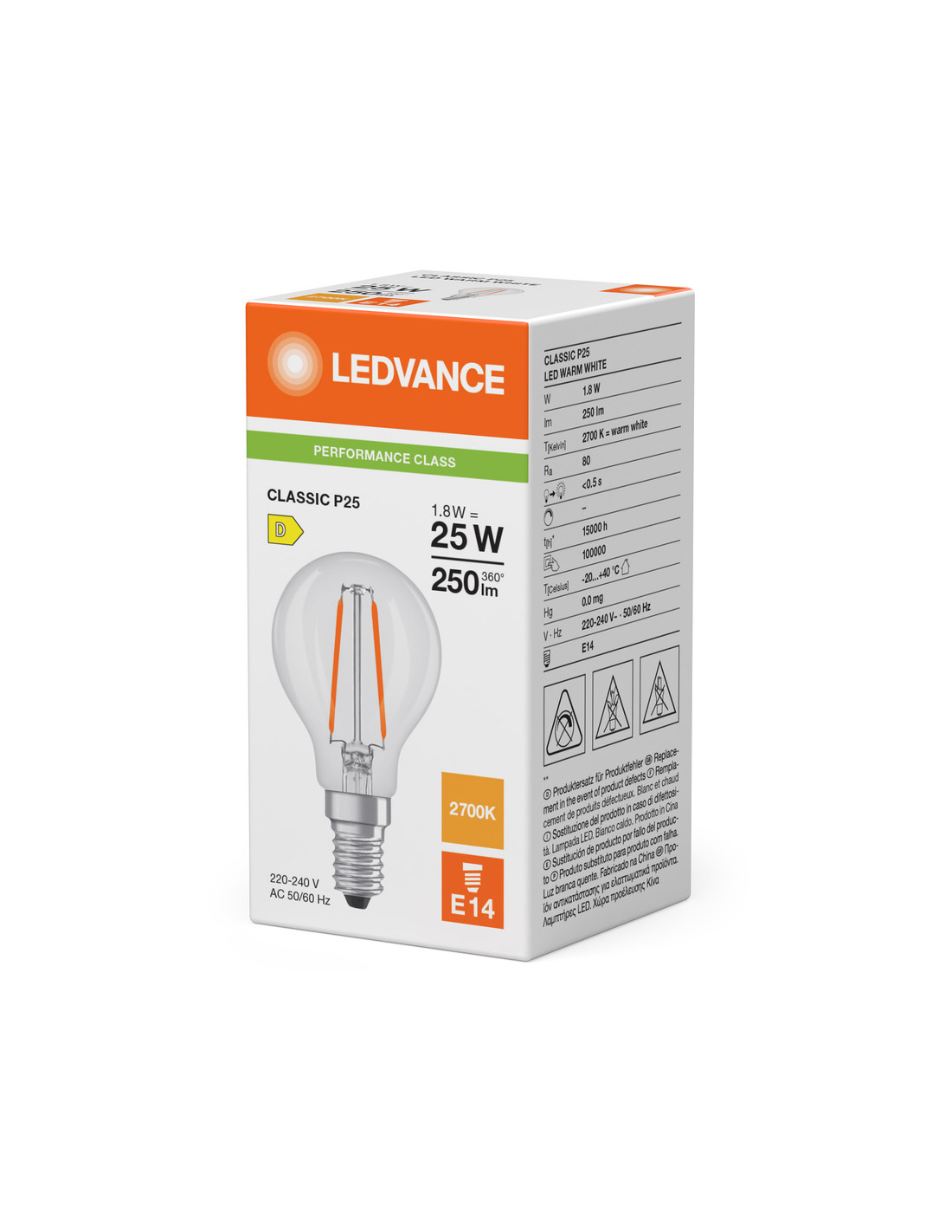ŻARÓWKA LED P CLP25 1,8W 2700K ciepła biała E14 FIL CL 250LM