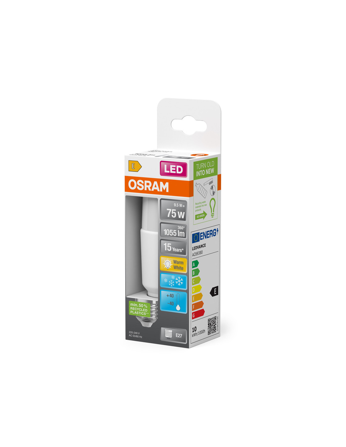 Cechy produktu: LED zamienniki tradycyjnych żarówek. Dobra jakość światła, wskaźnik oddawania barw Ra: 80; stała chromatyczność. Zalety produktu: Niższe zużycie energii w porównaniu do lamp żarowych lub halogenowych. Atrakcyjny wygląd lamp. Obszary zastosowań: Wszystkie pomieszczenia mieszkalne, zwłaszcza tam, gdzie lampy są widoczne. Tam, gdzie potrzebne są wydajne lampy kompaktowe. Tam, gdzie od lamp wymaga się długiej trwałości lub odporności na częste włączanie i wyłączanie. Do użytku na zewnątrz tylko w odpowiednich oprawach zewnętrznych. Porady dotyczące bezpieczeństwa: Nie dotykaj lampy, jeśli jest stłuczona.. Nie wolno używać, jeśli zewnętrzne źródło światła jest uszkodzone..