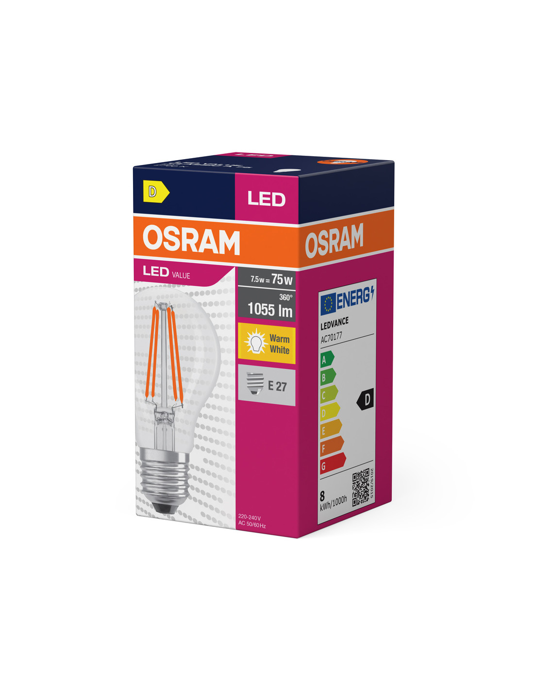 ŻARÓWKA LED VALUE RF CLA75 7,5W 2700K ciepła biała 1055LM FIL E27