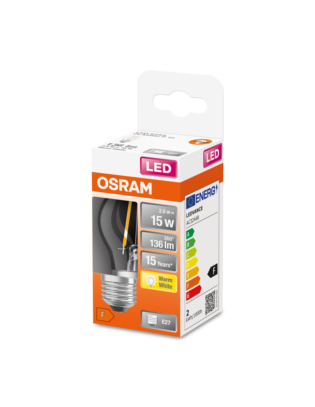 Cechy produktu: Profesjonalne lampy dla napięcia sieciowego. Brak możliwości regulacji strumienia świetlnego. Kąt wiązki światła: do 300°. Trwałość do 15 000 h. Lampa wykonana ze szkła. Dobra jakość światła, wskaźnik oddawania barw Ra: 80; stała chromatyczność. Zalety produktu: Niższe zużycie energii w porównaniu do lamp żarowych lub halogenowych. Lampy wyposażone w innowacyjną technologię „włókien” LED. Brak promieniowania UV i podczerwonego w wiązce światła. Natychmiast 100 % światła, bez czasu nagrzewania. Łatwy montaż zamiast zwykłych żarówek. Niskie obciążenie cieplne (w porównaniu ze standardowym produktem referencyjnym). Wygląd, wymiary i strumień świetlny porównywalne z tradycyjnymi żarówkami lub żarówkami halogenowymi. Obszary zastosowań: Doskonałe rozwiązanie do instalacji dekoracyjnych. Zastosowania domowe. Oświetlenie ogólne. Do użytku na zewnątrz tylko w odpowiednich oprawach zewnętrznych. Porady dotyczące bezpieczeństwa: Nie dotykaj lampy, jeśli jest stłuczona.. Nie wolno używać, jeśli zewnętrzne źródło światła jest uszkodzone..