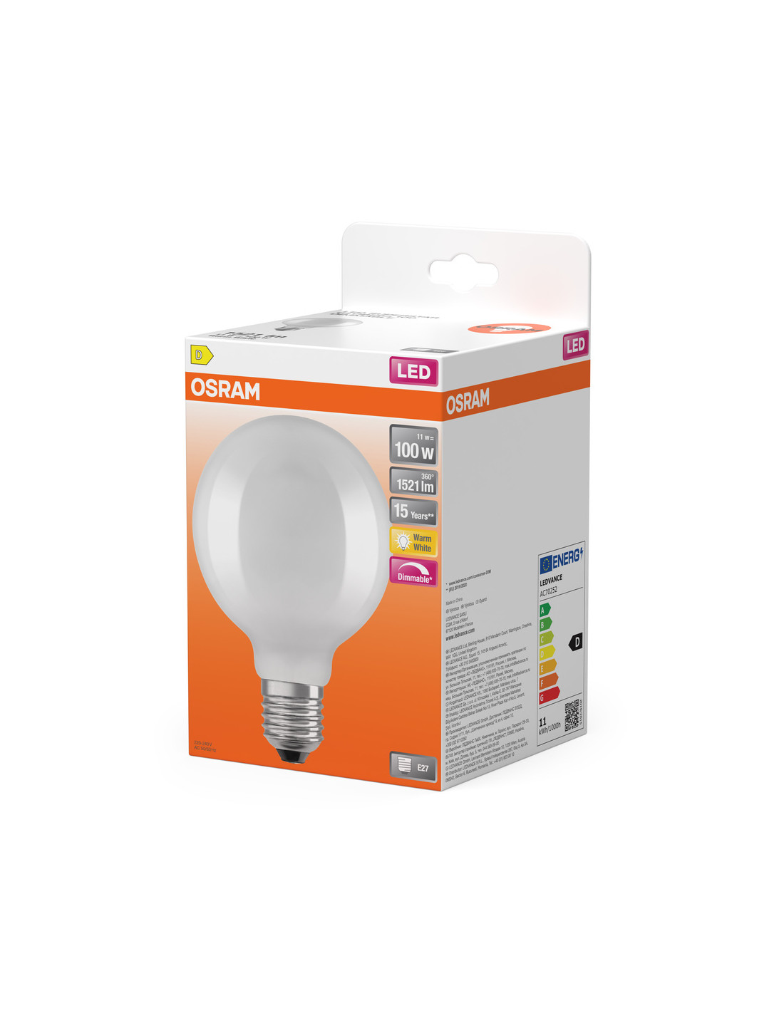 Cechy produktu: Ściemnialne. Trwałość do 15 000 h. Kąt wiązki światła: do 360°. Profesjonalne lampy dla napięcia sieciowego. Lampa wykonana ze szkła. Dobra jakość światła, wskaźnik oddawania barw Ra: 80; stała chromatyczność. Zalety produktu: Niższe zużycie energii w porównaniu do lamp żarowych lub halogenowych. Konstrukcja, wymiary i strumień świetlny porównywalne z tradycyjną żarówką. Łatwy montaż zamiast zwykłych żarówek. Lampy wyposażone w innowacyjną technologię „włókien” LED. Natychmiast 100 % światła, bez czasu nagrzewania. Obszary zastosowań: Doskonałe rozwiązanie do instalacji dekoracyjnych. Zastosowania domowe. Oświetlenie ogólne. Do użytku na zewnątrz tylko w odpowiednich oprawach zewnętrznych. Porady dotyczące bezpieczeństwa: Nie dotykaj lampy, jeśli jest stłuczona.. Nie wolno używać, jeśli zewnętrzne źródło światła jest uszkodzone..