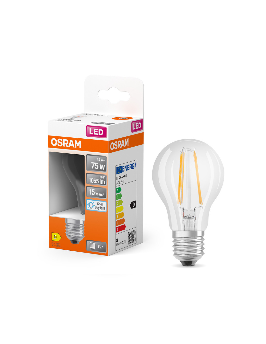 Cechy produktu: Profesjonalne lampy dla napięcia sieciowego. Brak możliwości regulacji strumienia świetlnego. Trwałość do 15 000 h. Kąt wiązki światła: do 300°. Lampa wykonana ze szkła. Dobra jakość światła, wskaźnik oddawania barw Ra: 80; stała chromatyczność. Zalety produktu: Lampy wyposażone w innowacyjną technologię „włókien” LED. Wygląd, wymiary i strumień świetlny porównywalne z tradycyjnymi żarówkami lub żarówkami halogenowymi. Niższe zużycie energii w porównaniu do lamp żarowych lub halogenowych. Brak promieniowania UV i podczerwonego w wiązce światła. Natychmiast 100 % światła, bez czasu nagrzewania. Obszary zastosowań: Doskonałe rozwiązanie do instalacji dekoracyjnych. Zastosowania domowe. Oświetlenie ogólne. Do użytku na zewnątrz tylko w odpowiednich oprawach zewnętrznych. Porady dotyczące bezpieczeństwa: Nie dotykaj lampy, jeśli jest stłuczona.. Nie wolno używać, jeśli zewnętrzne źródło światła jest uszkodzone..