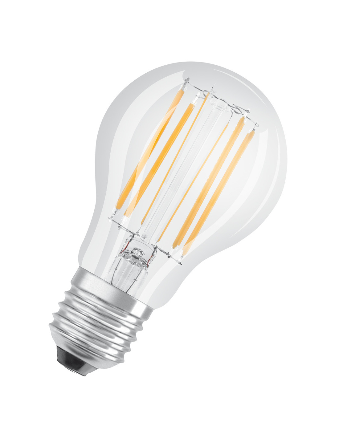 Cechy produktu: Lampy LED dla napięcia sieciowego. Kąt wiązki światła: do 300°. Ściemnialne. Wskaźnik oddawania barw Ra: 90. Zalety produktu: Lampy wyposażone w innowacyjną technologię „włókien” LED. Wygląd, wymiary i strumień świetlny porównywalne z żarówkami halogenowymi. Widmo światła naturalnego z doskonałym wskaźnikiem oddawania barw Ra > 90. Znacznie zmniejszony zakres niebieskiego światła. Poprawiony komfort widzenia i zmniejszone zmęczenie wzroku. Niższe zużycie energii w porównaniu do lamp żarowych lub halogenowych. Natychmiast 100 % światła, bez czasu nagrzewania. Niskie tętnienie światła. Obszary zastosowań: Doskonałe rozwiązanie do instalacji dekoracyjnych. Zastosowania domowe. Oświetlenie ogólne. Do użytku na zewnątrz tylko w odpowiednich oprawach zewnętrznych. Porady dotyczące bezpieczeństwa: Nie dotykaj lampy, jeśli jest stłuczona.. Nie wolno używać, jeśli zewnętrzne źródło światła jest uszkodzone..